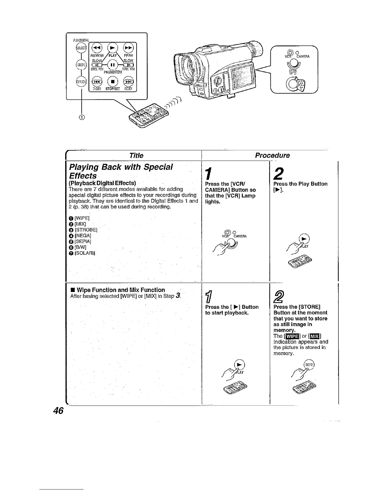 Panasonic NV-DA1B - Playing Back with Special Effects; Playback Digital Effects; Wipe Function and MIX Function