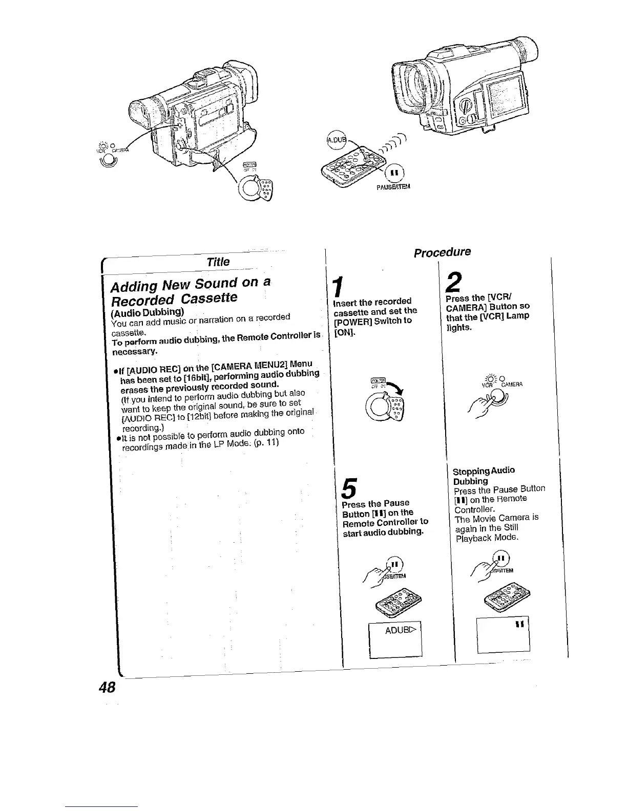 Panasonic NV-DA1B - Adding New Sound on a Recorded Cassette; Audio Dubbing