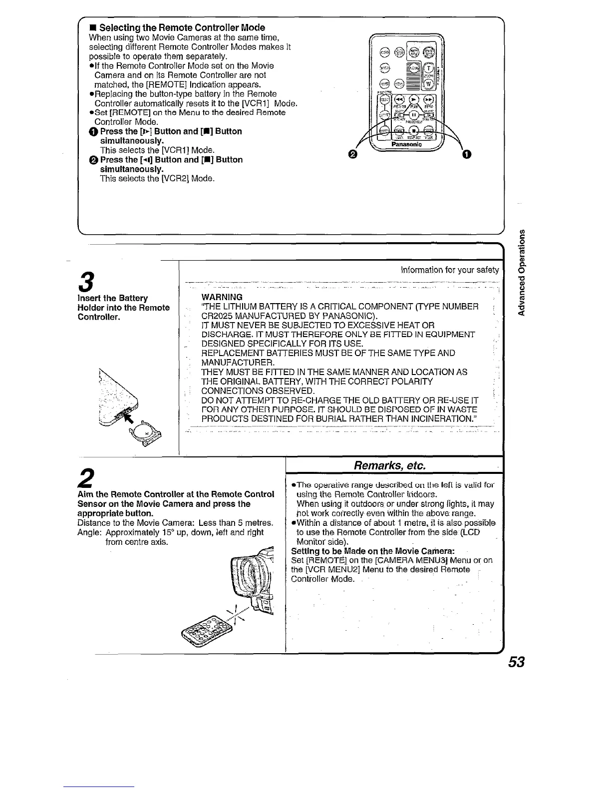 Panasonic NV-DA1B - Selecting the Remote Controller Mode