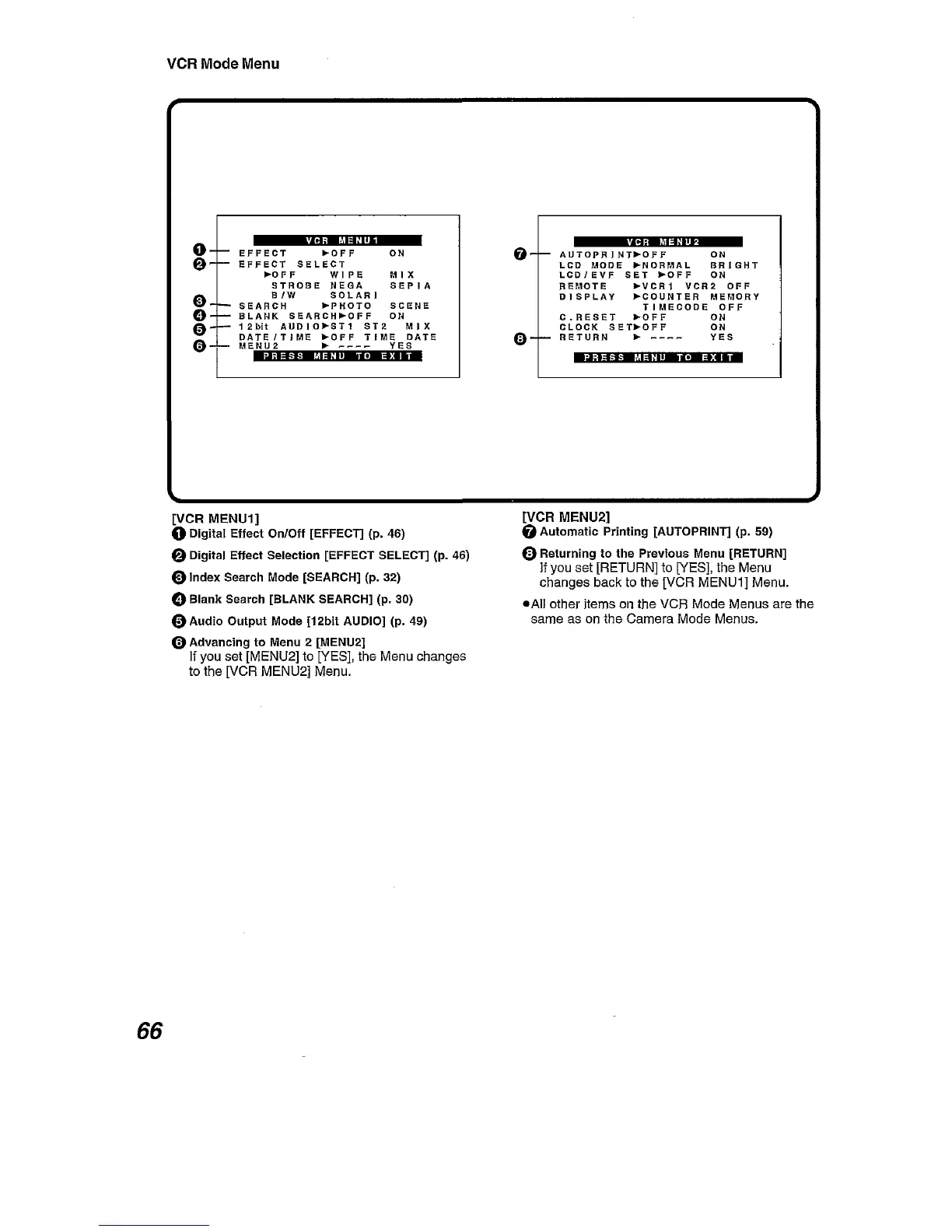 Panasonic NV-DA1B - VCR Mode Menu