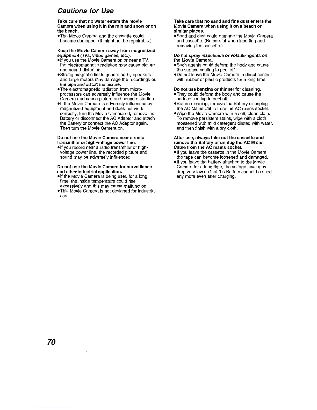 Panasonic NV-DA1B - Cautions for Use
