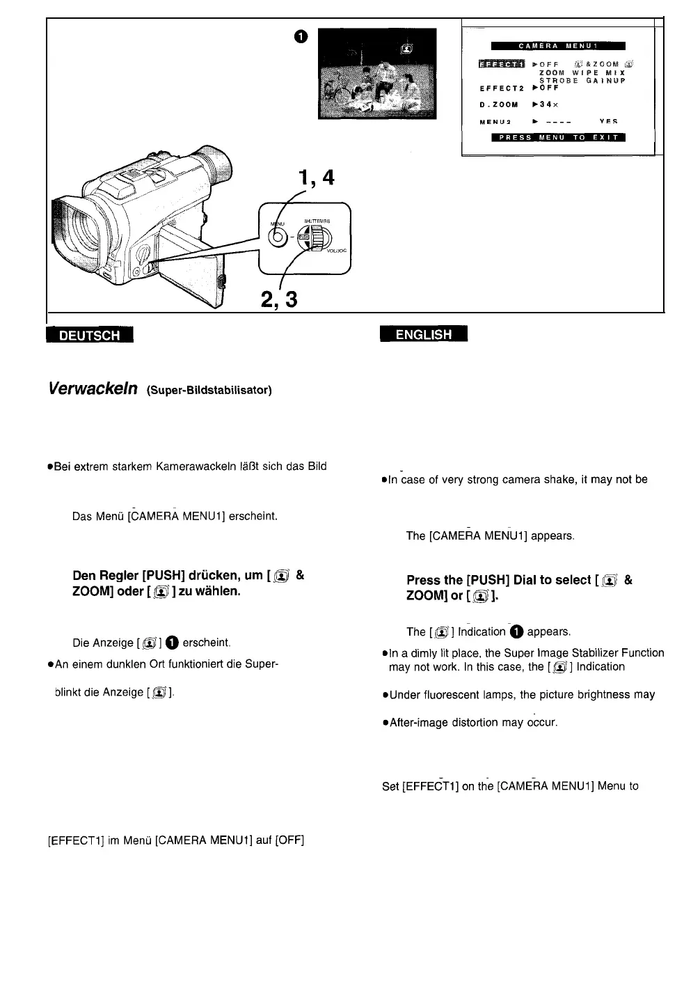 Bildstabilisator-Funktion u. U. nicht. In diesem Fall