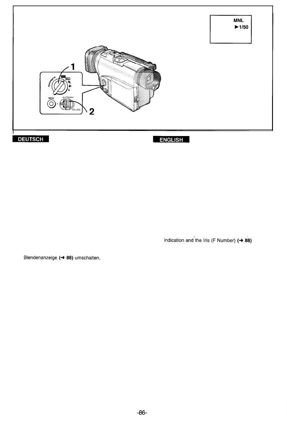 Die Anzeige [MNL] und die Verschlußzeit-Anzeige