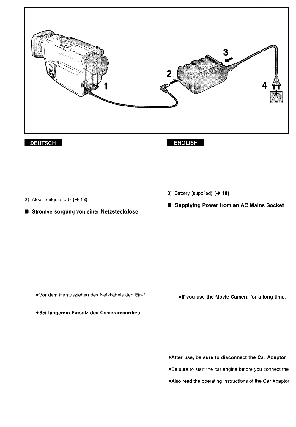 The use of the Car Adaptor Cord (VW-KA7E; optional)