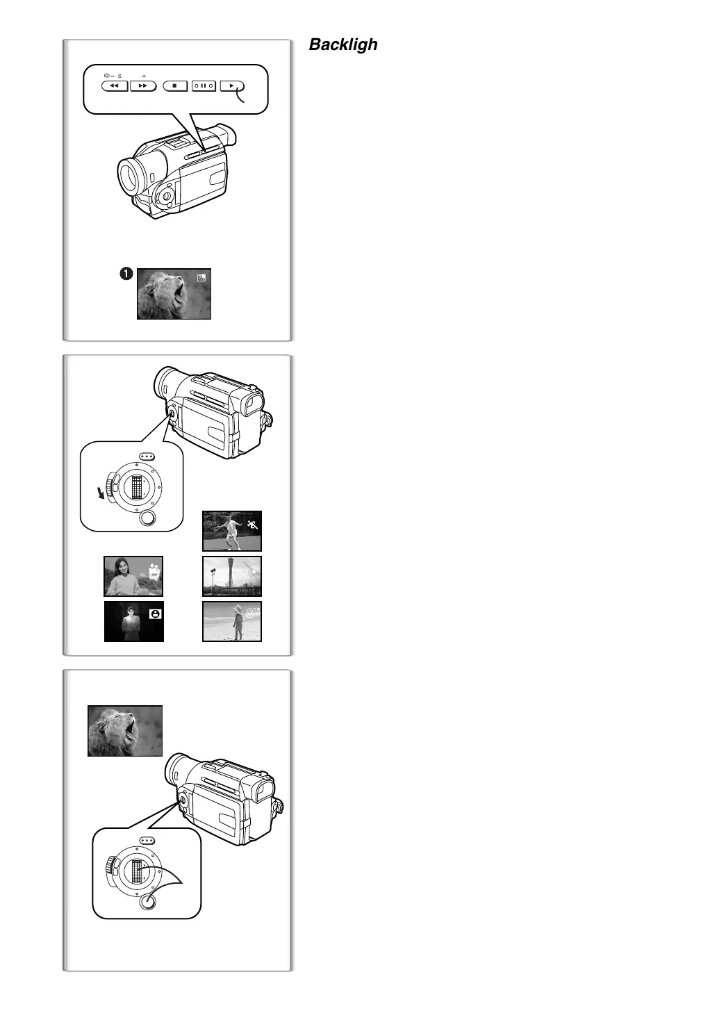 Panasonic NV-DS27 - Advanced Recording Settings; Backlight Compensation; Recording in Special Situations (Programme AE); Wind Noise Reduction