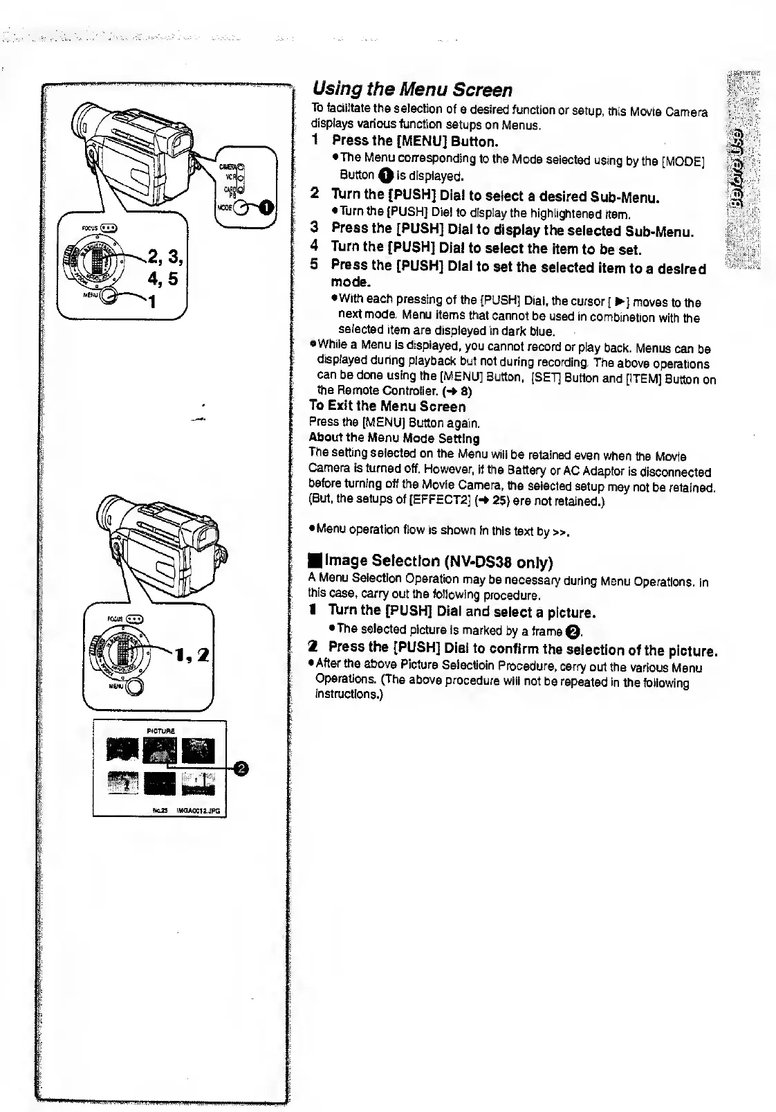 Panasonic NV-DS28A - Using the Menu Screen; Image Selection