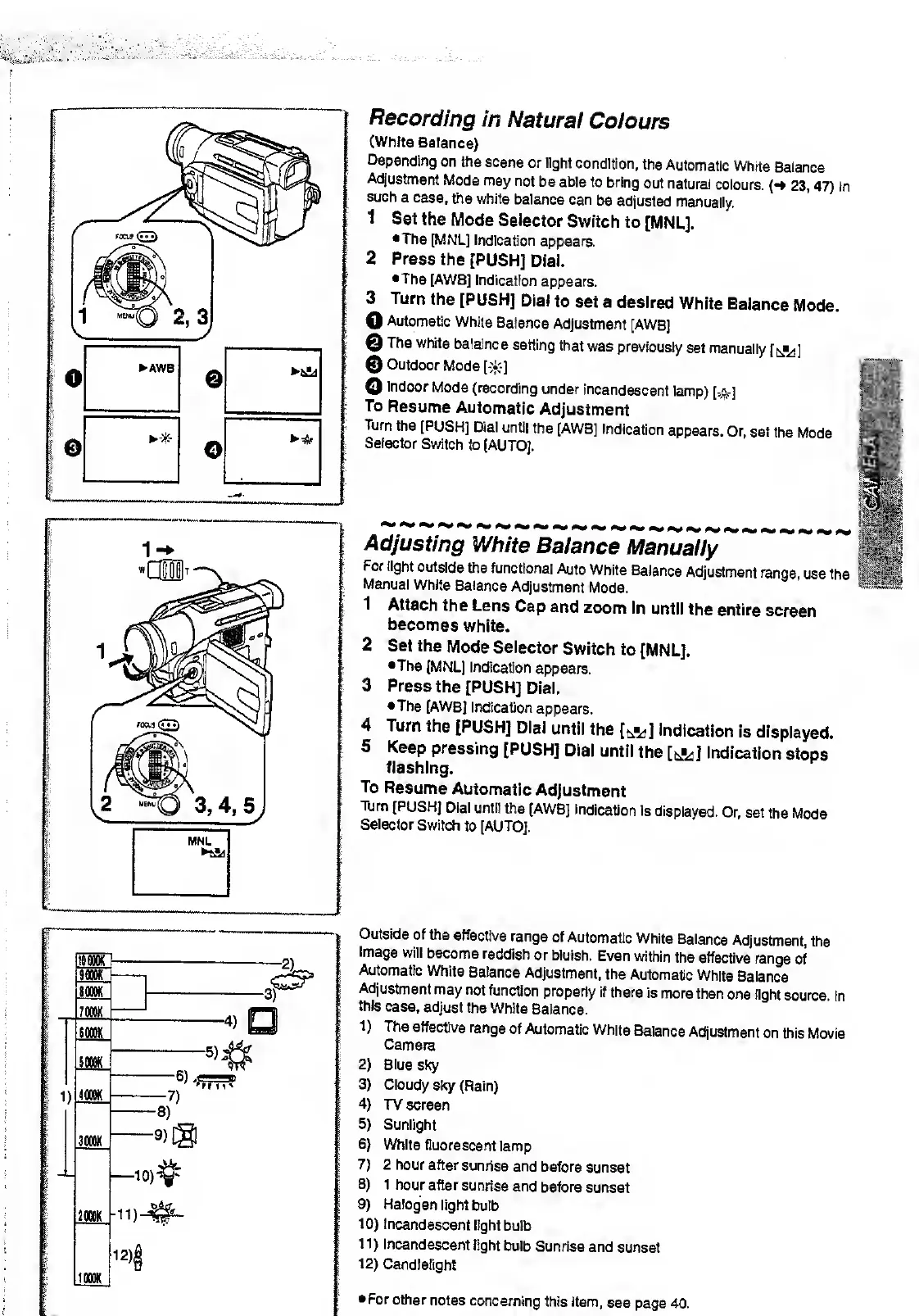 Panasonic NV-DS28A - Recording in Natural Colours; Adjusting White Balance Manually