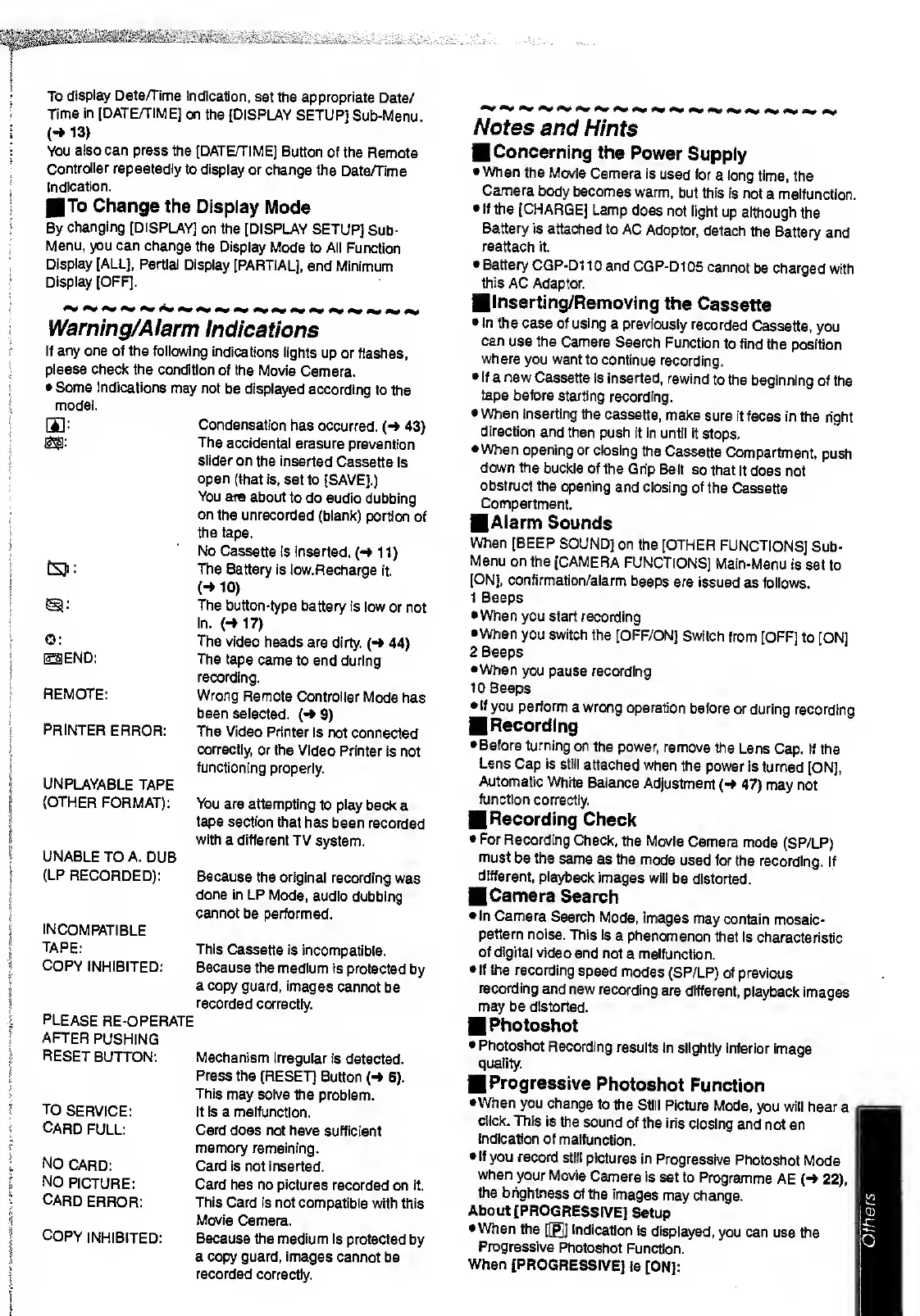 Panasonic NV-DS28A - Warning;Alarm; Printer Error; Notes
