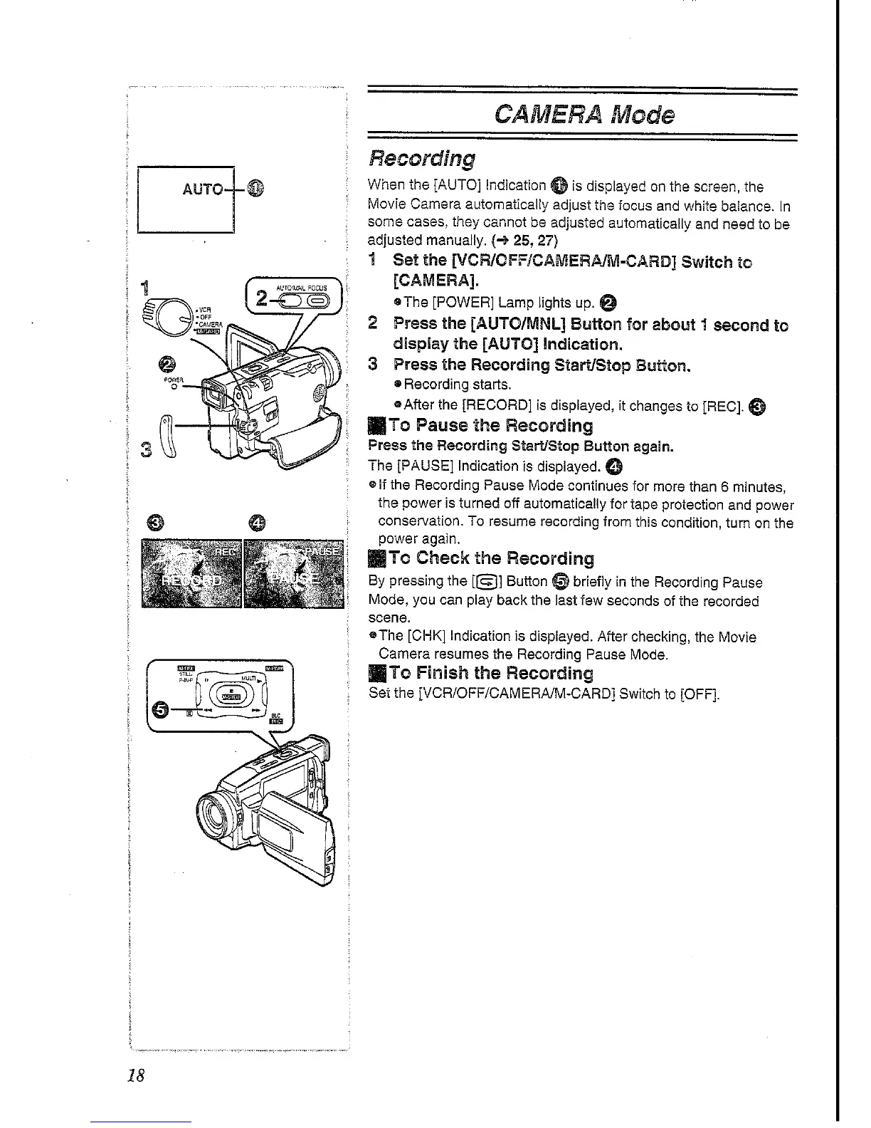 Panasonic NV-DS30 - CAMERA Mode; Starting and Pausing Recording