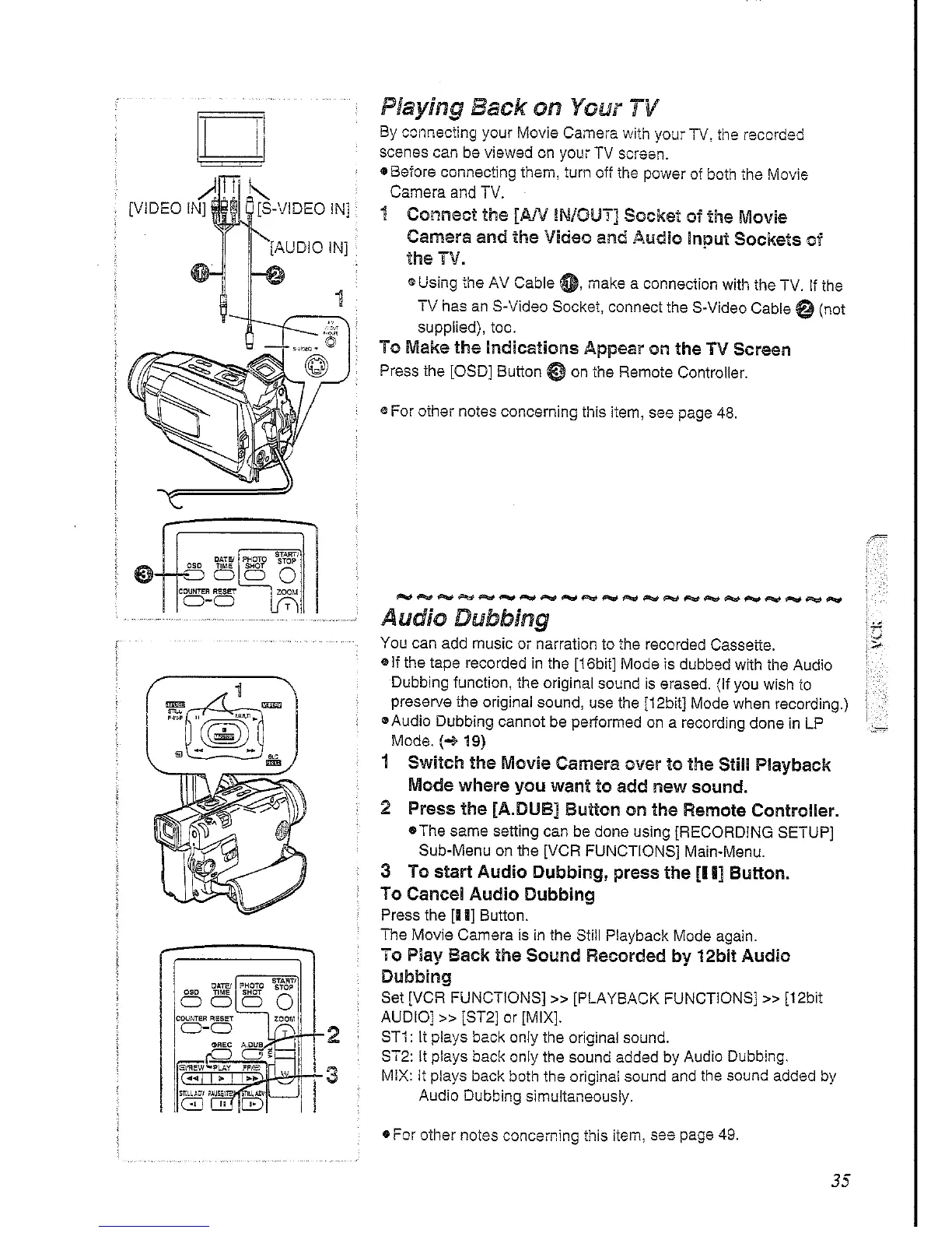 Panasonic NV-DS30 - Playback and Audio Dubbing; Playing Back on TV; Audio Dubbing Process