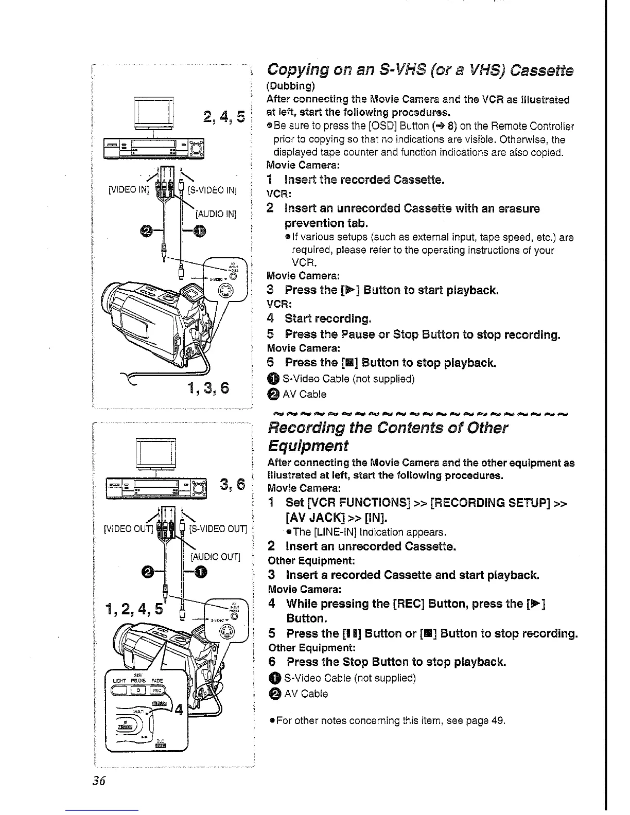 Panasonic NV-DS30 - Dubbing and External Recording; Copying to VHS;S-VHS Cassette; Recording External Equipment Content