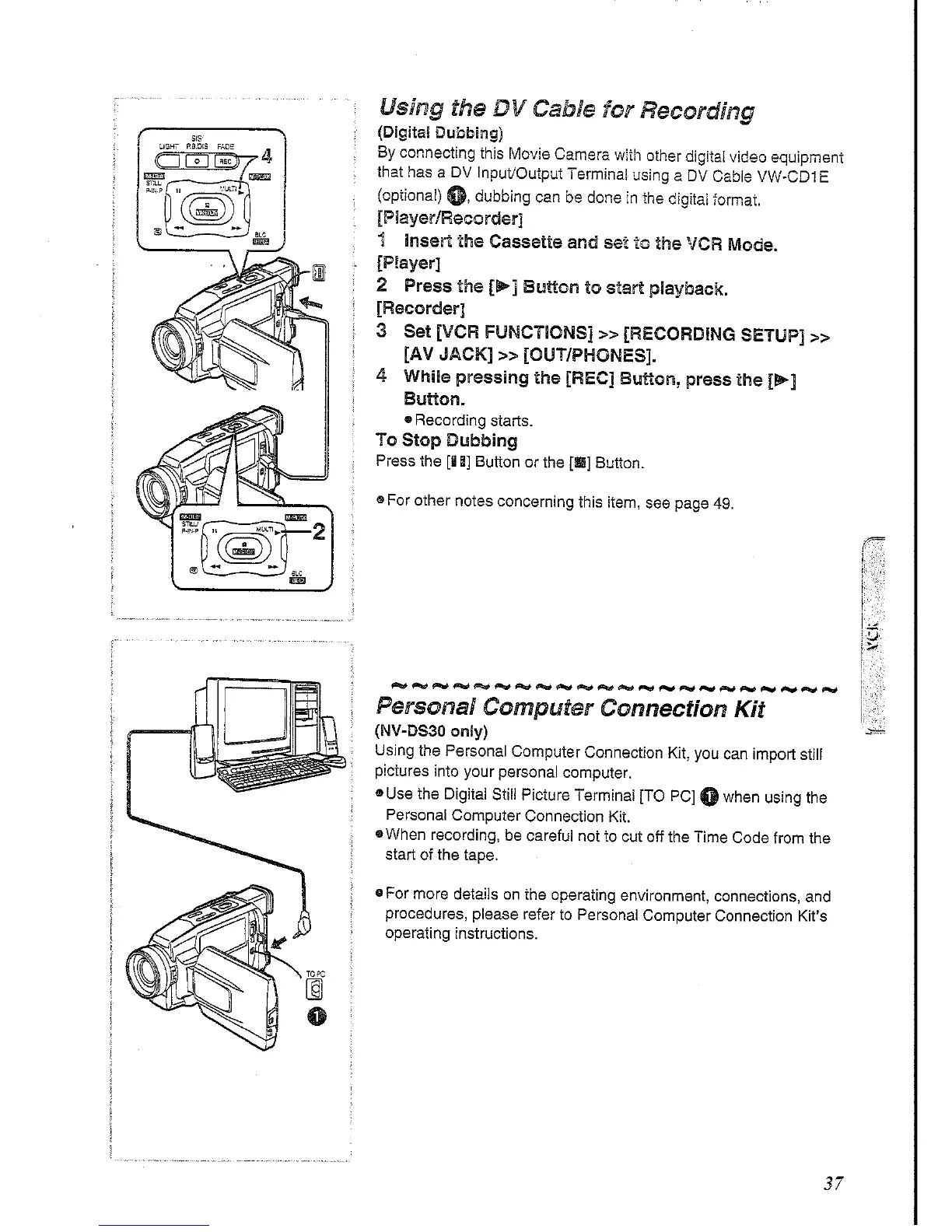 Panasonic NV-DS30 - Digital Connectivity Options; Digital Dubbing with DV Cable; PC Connection Kit for Still Pictures
