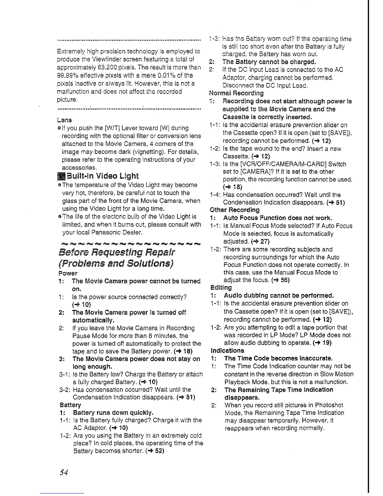 Panasonic NV-DS30 - Troubleshooting Camera Problems; Power and Recording Issues; Battery and Time Code Issues
