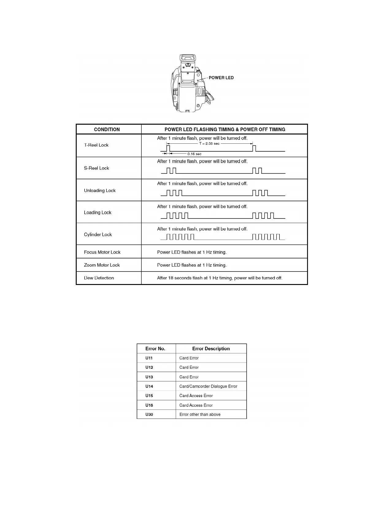 If any of the following numbers appear on-screen, the palmcorder