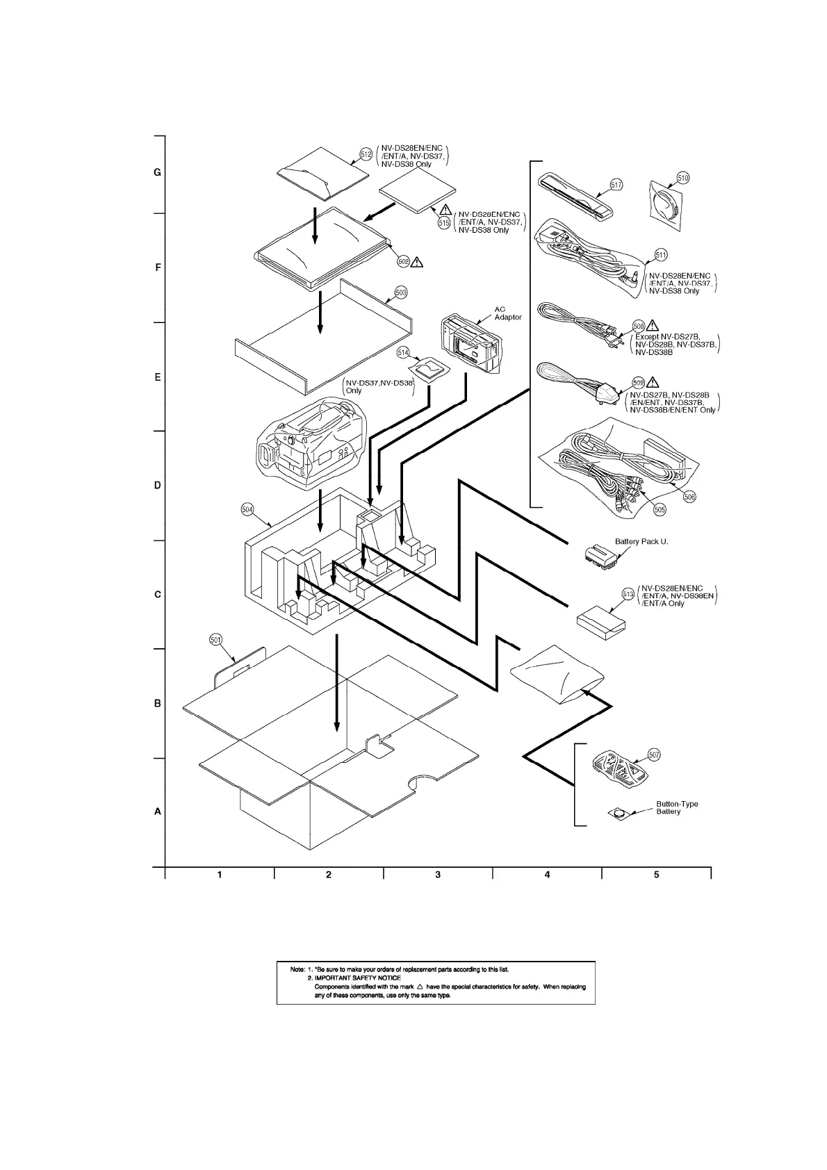 Panasonic NV-DS37B - Replacement Parts List; Frame & Casing Section (1) Parts List