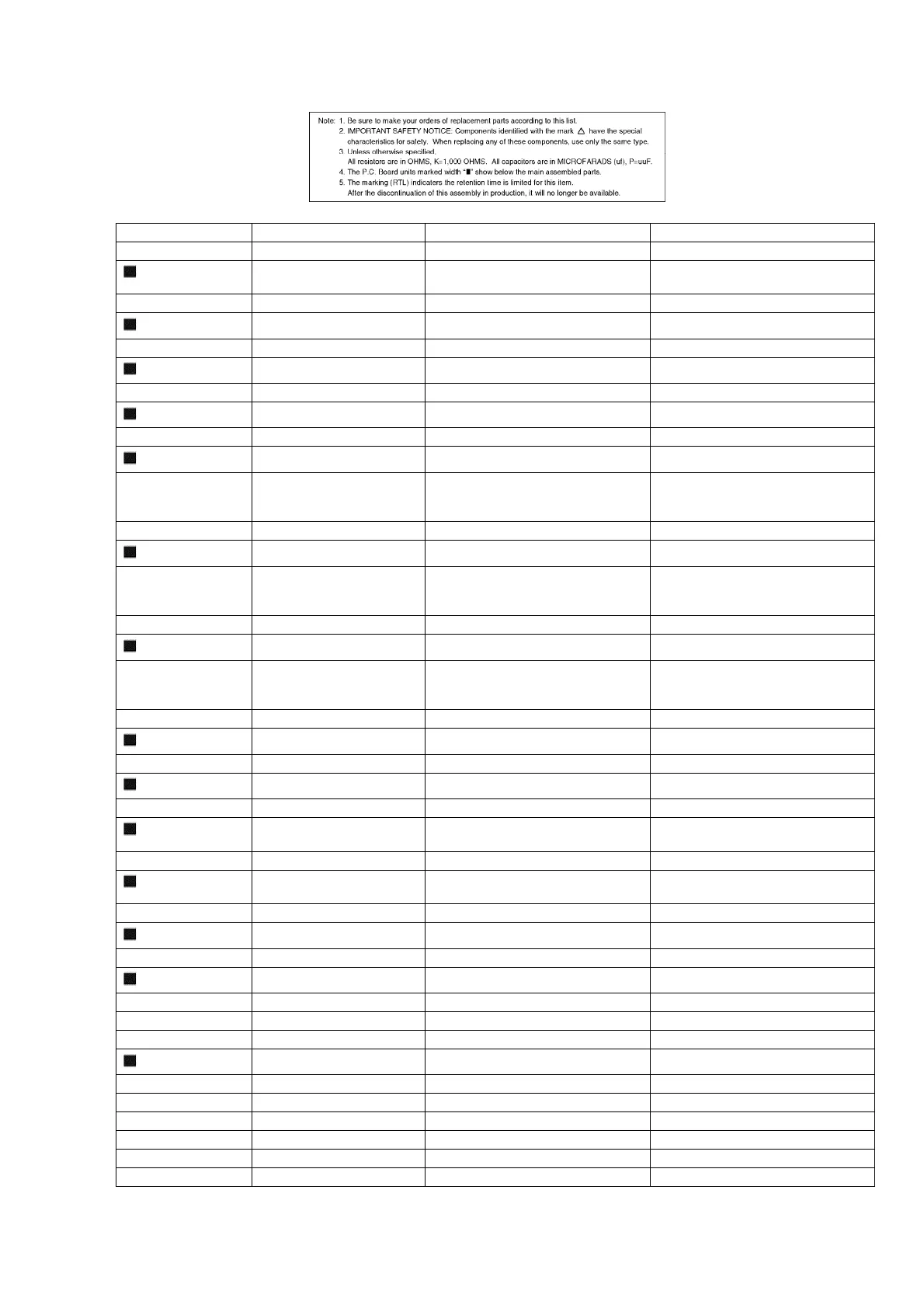 Ref. No. Part No. Part Name & Description Remarks