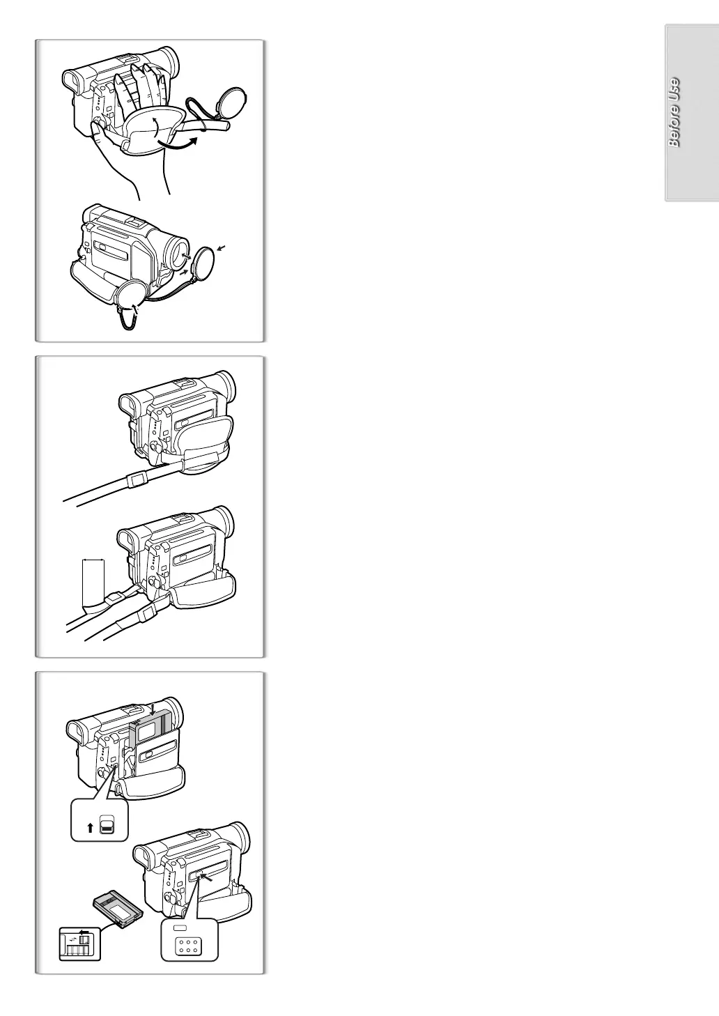 Panasonic NV-DS38 - Lens Cap and Grip Belt; Attaching the Shoulder Strap; Inserting a Cassette