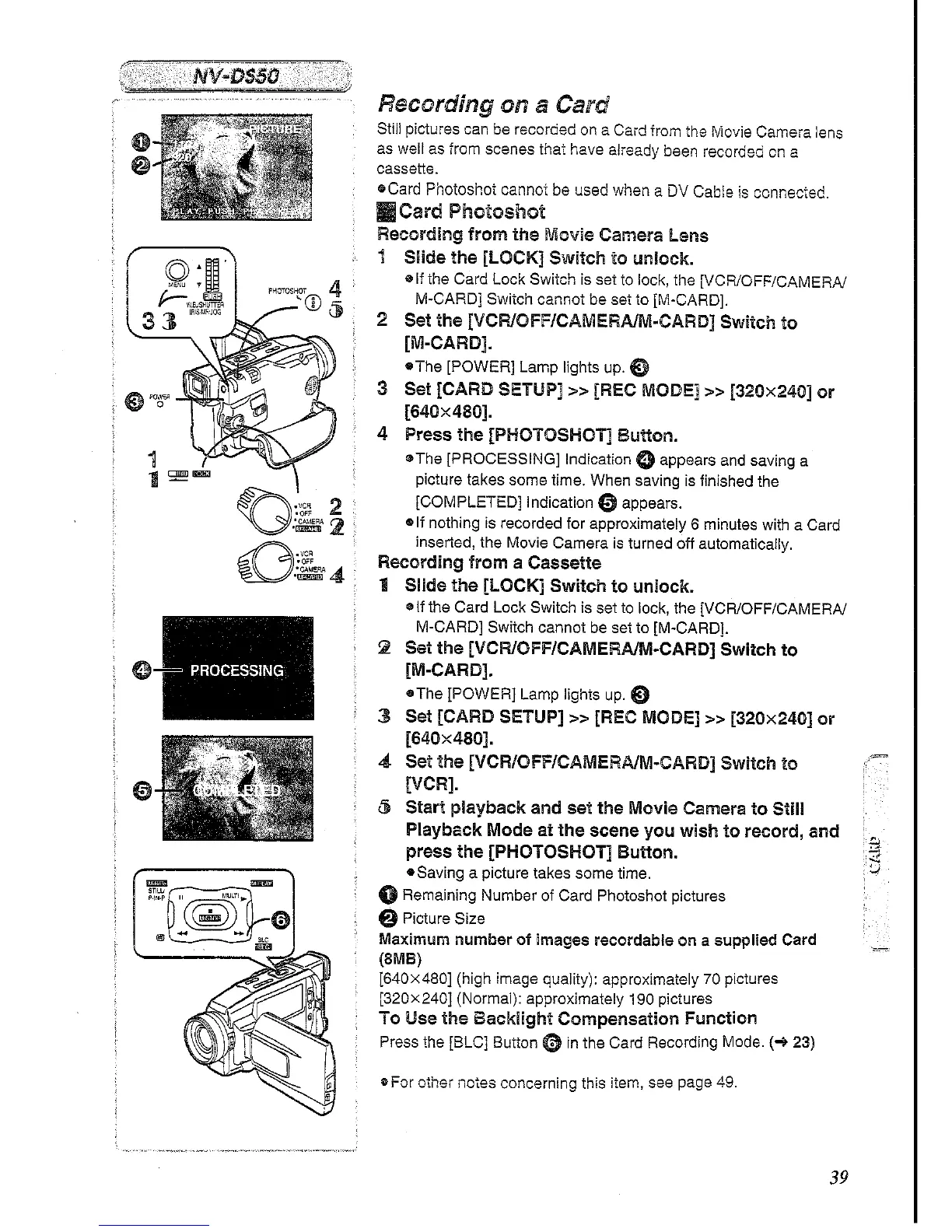 Panasonic NV-DS50 - Recording on a Card