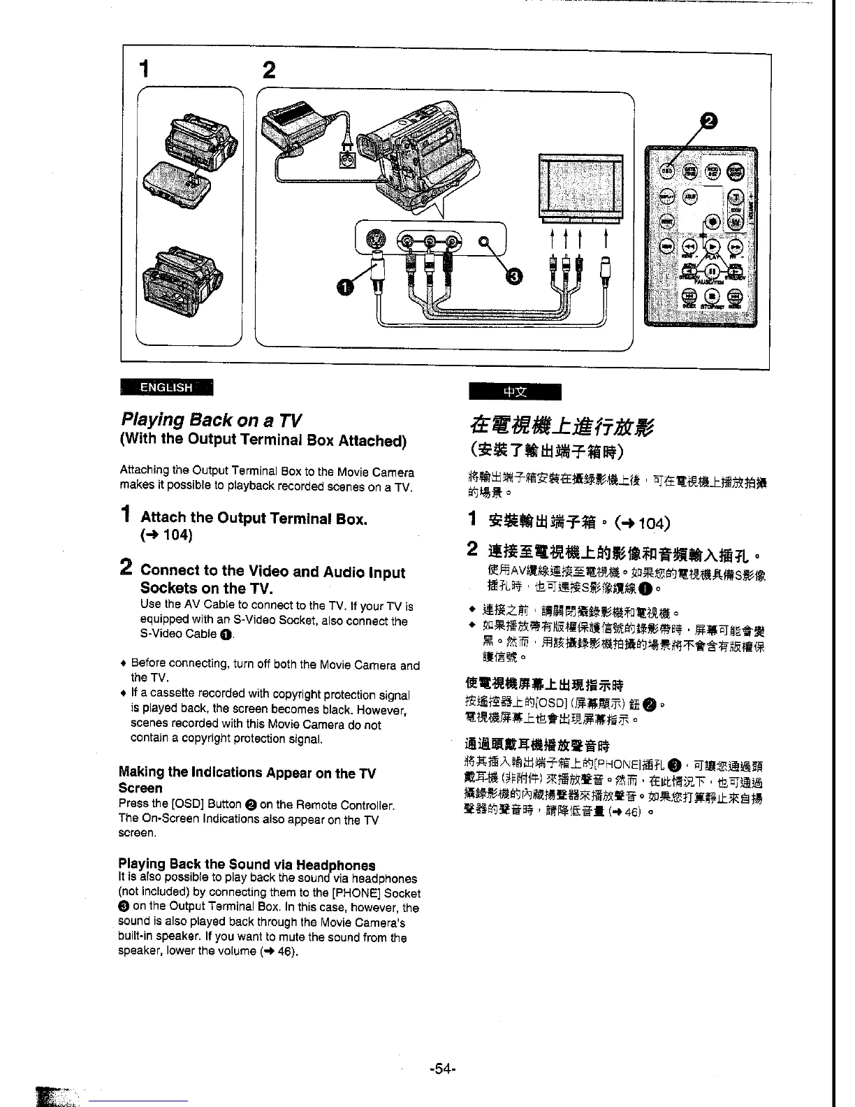 Panasonic NV-DS5EN - Playing Back on a TV; Playing Back the Sound Via Headphones