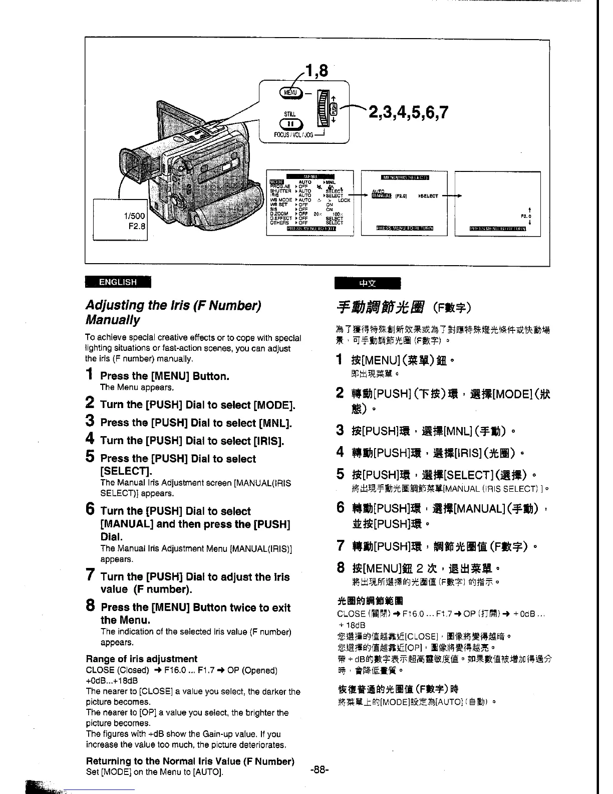 Panasonic NV-DS5EN - Adjusting the Iris (F Number) Manually; Range of Iris Adjustment; Returning to the Normal Iris Value