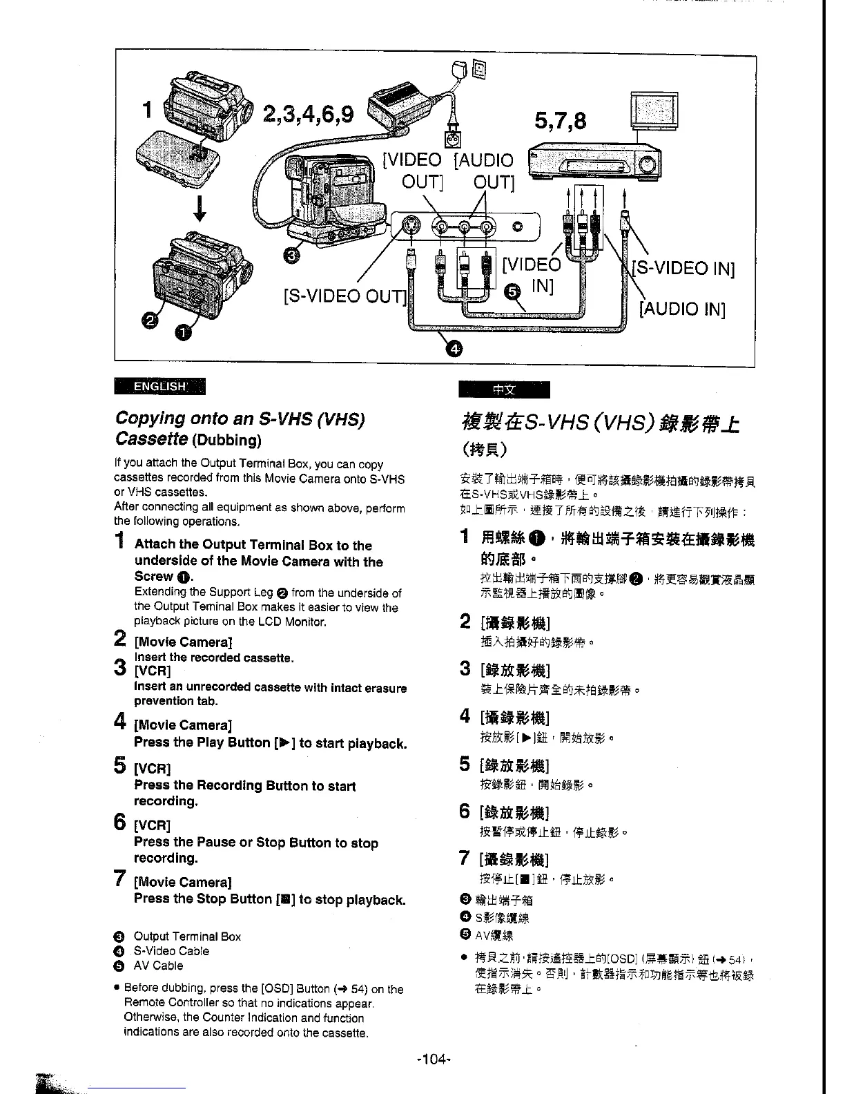 Panasonic NV-DS5EN - Copying Onto an S-VHS Cassette; Dubbing