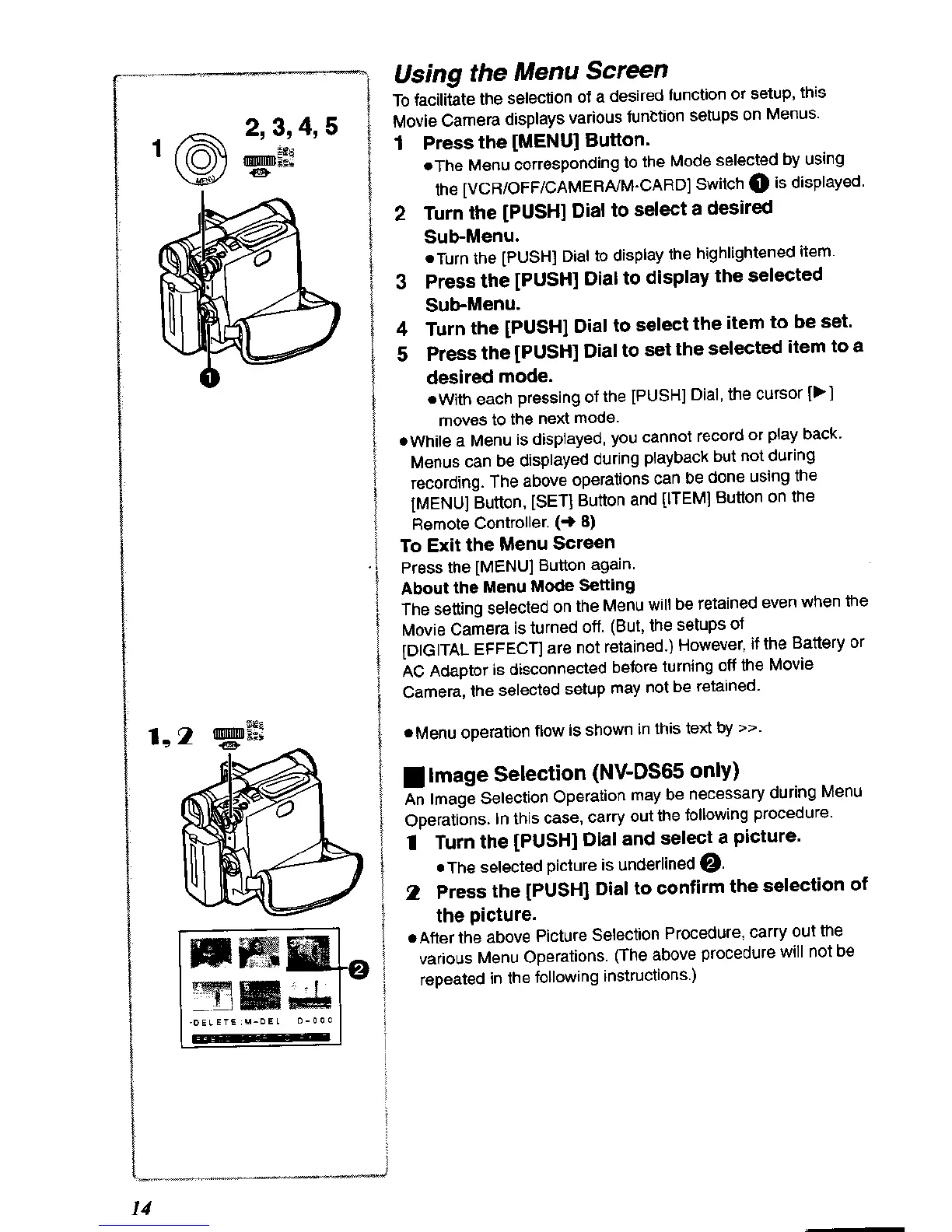 Panasonic NV-DS60A - Using the Menu Screen; Image Selection; To Exit the Menu Screen; About the Menu Mode Setting