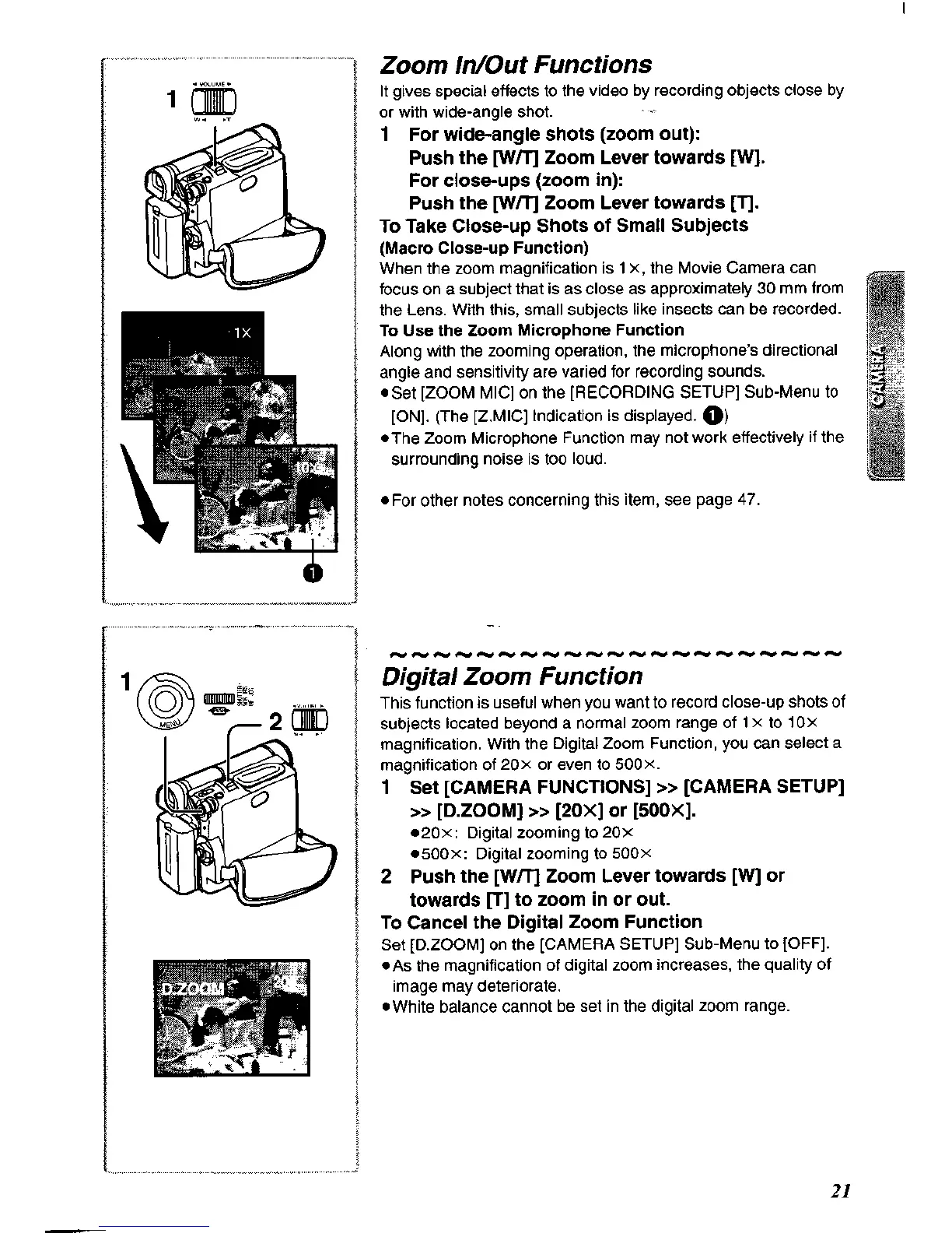 Panasonic NV-DS60A - Zoom In;Out Functions; Digital Zoom Function