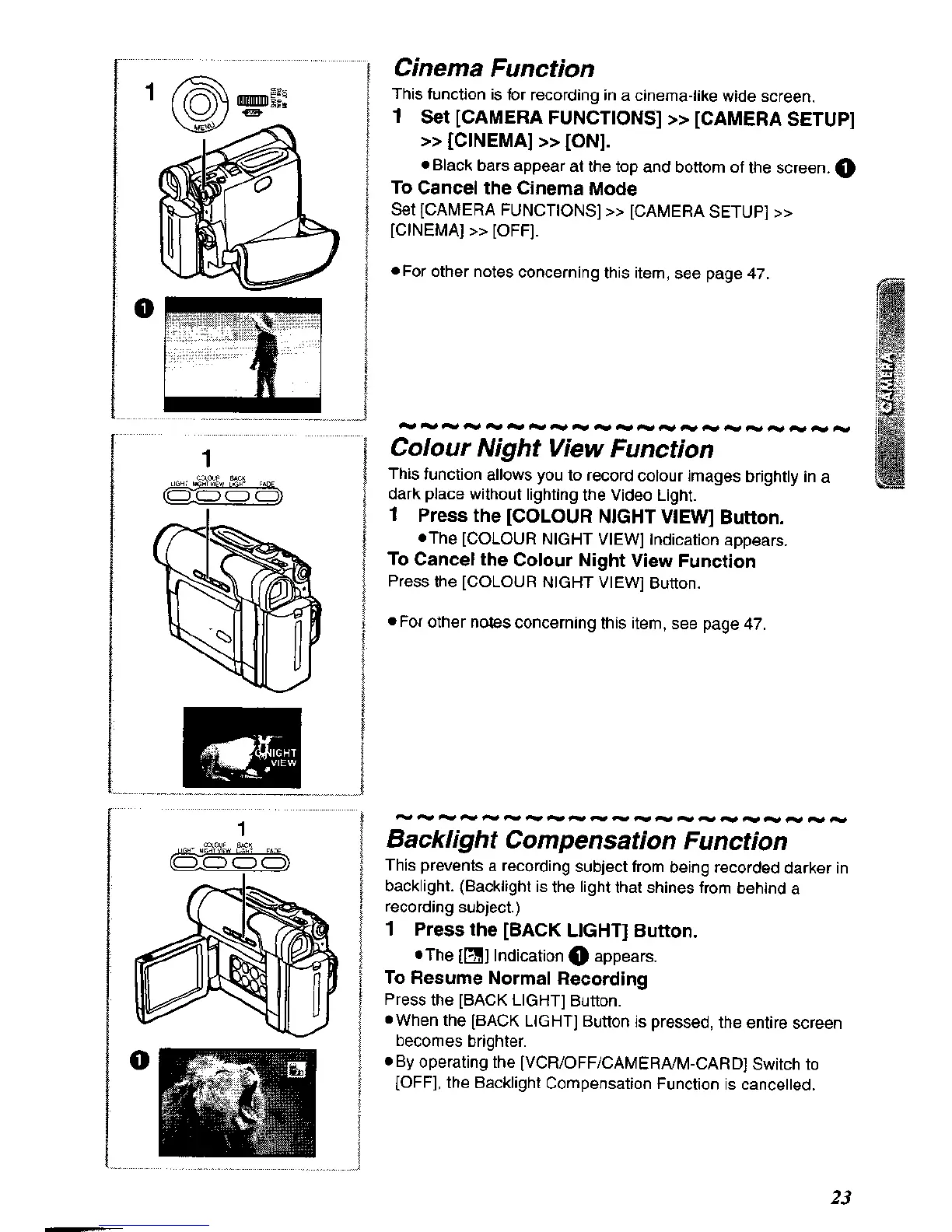 Panasonic NV-DS60A - Cinema Function; Colour Night View Function; Backlight Compensation Function