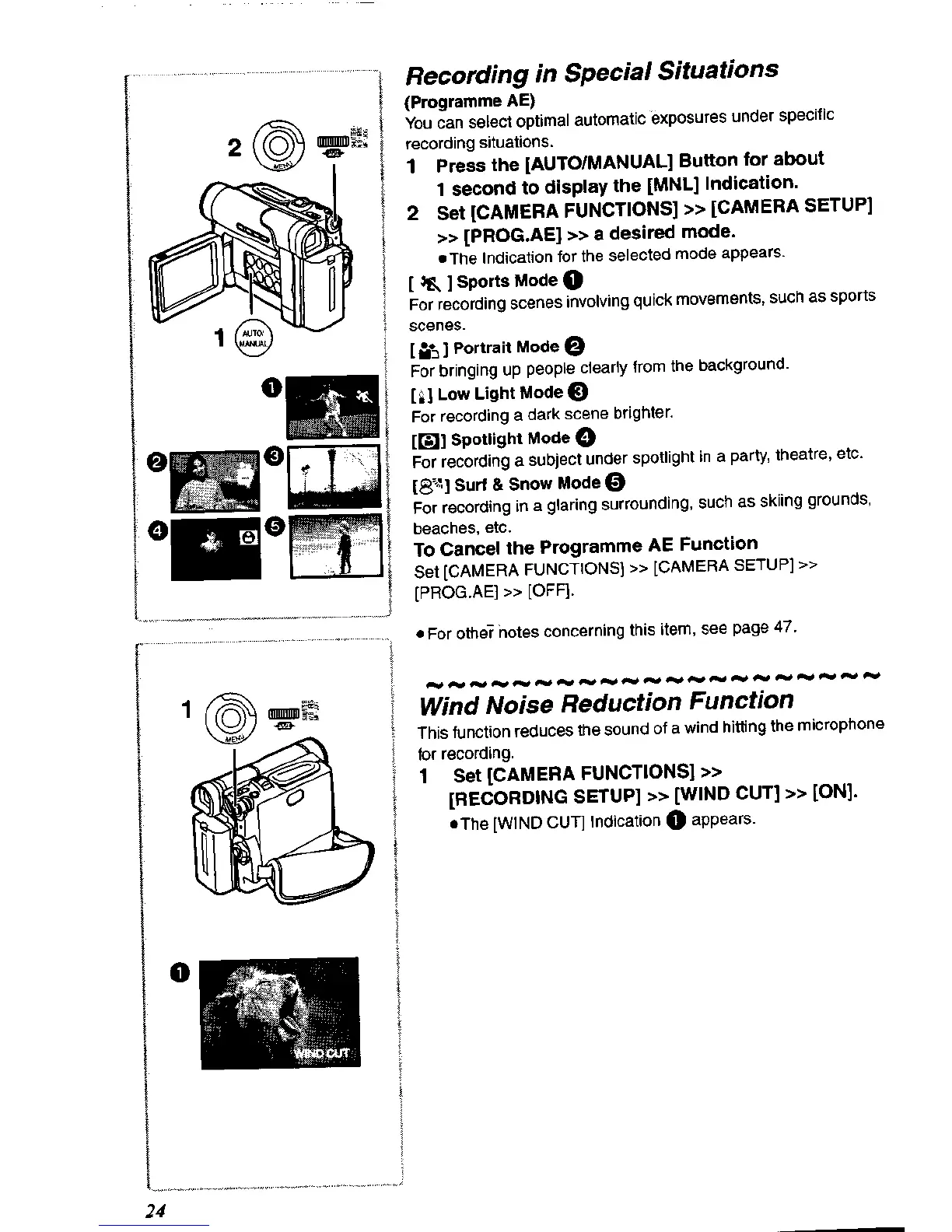 Panasonic NV-DS60A - Recording in Special Situations; Wind Noise Reduction Function