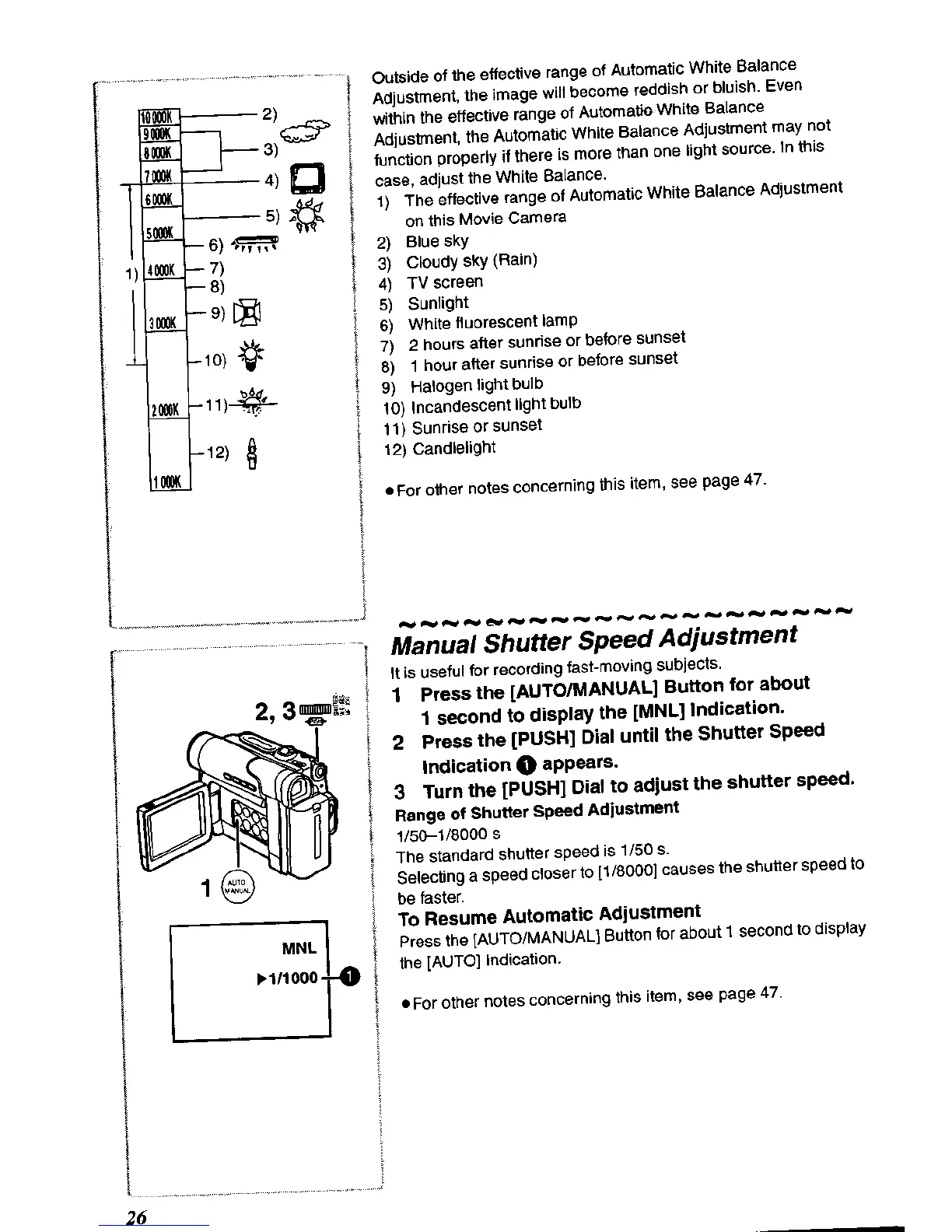 Panasonic NV-DS60A - Manual Shutter Speed Adjustment; Range of Shutter Speed Adjustment; To Resume Automatic Adjustment