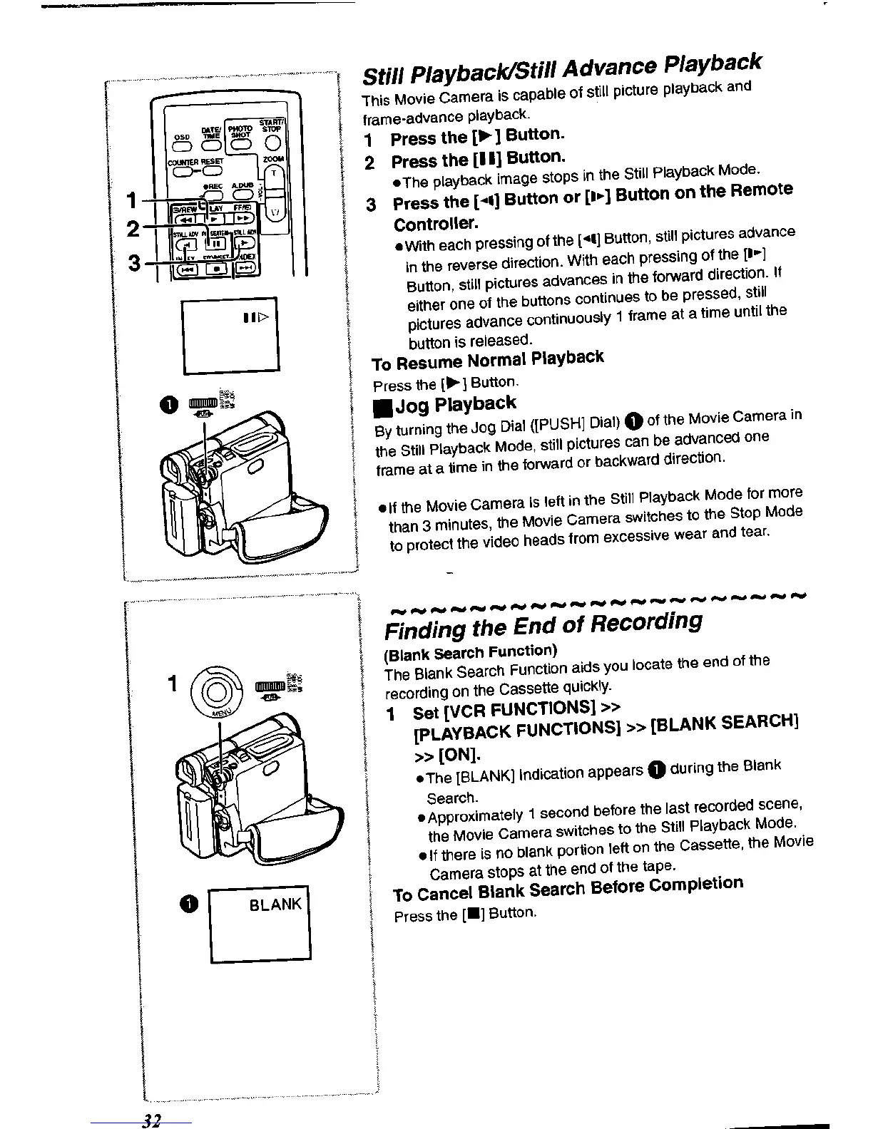Panasonic NV-DS60A - Still Playback;Still Advance Playback; Finding the End of Recording; Jog Playback; To Resume Normal Playback