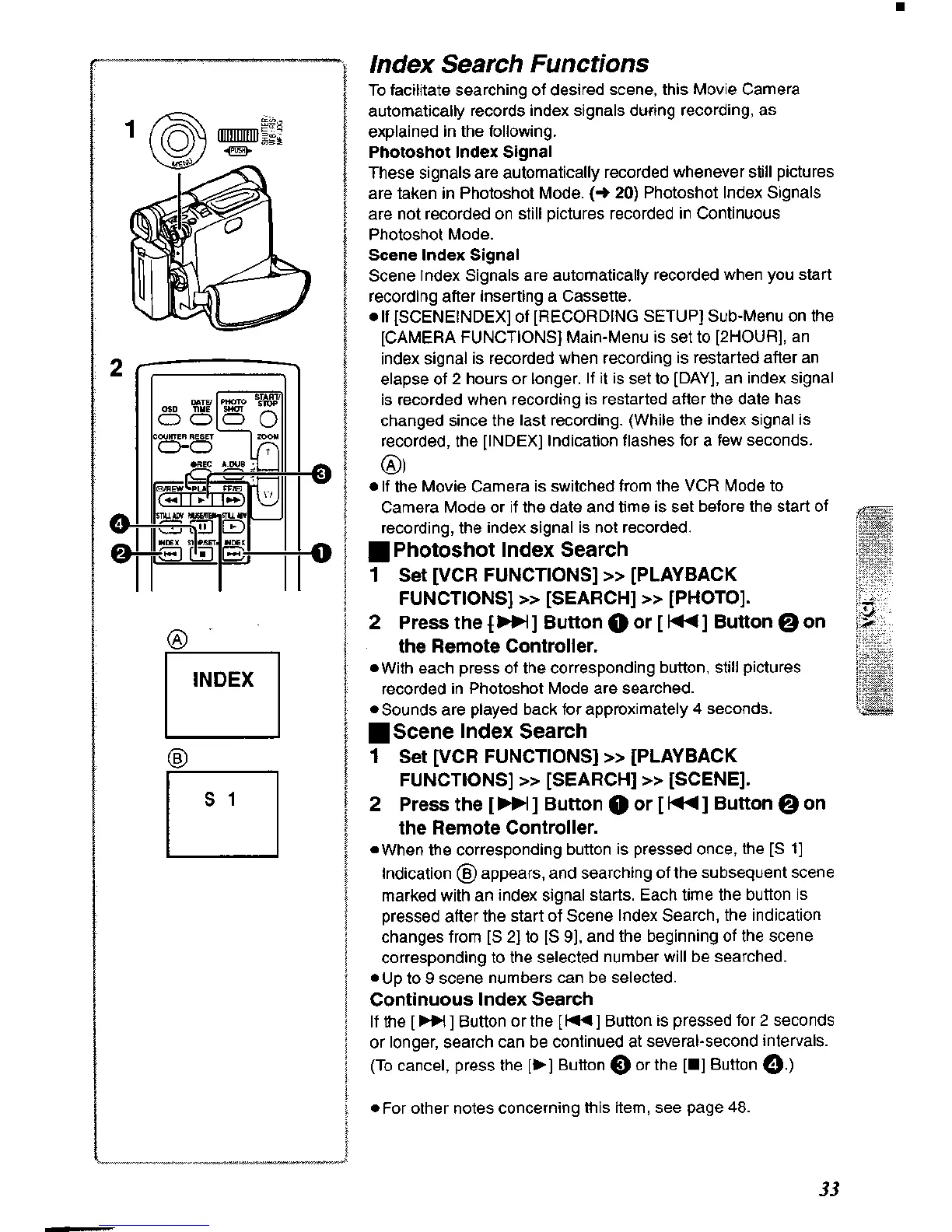 Panasonic NV-DS60A - Index Search Functions; Photoshot Index Search; Scene Index Search