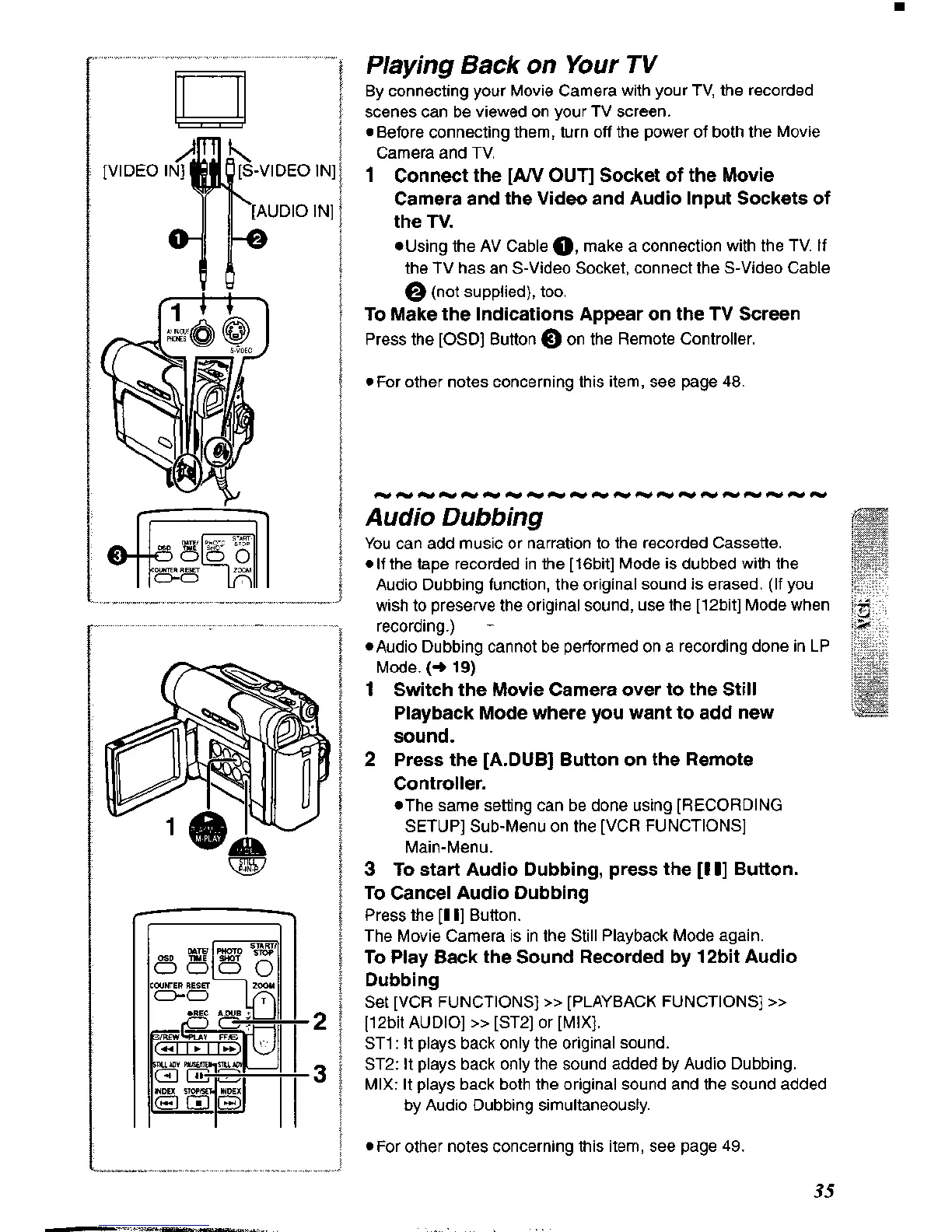 Panasonic NV-DS60A - Playing Back on Your TV; Audio Dubbing