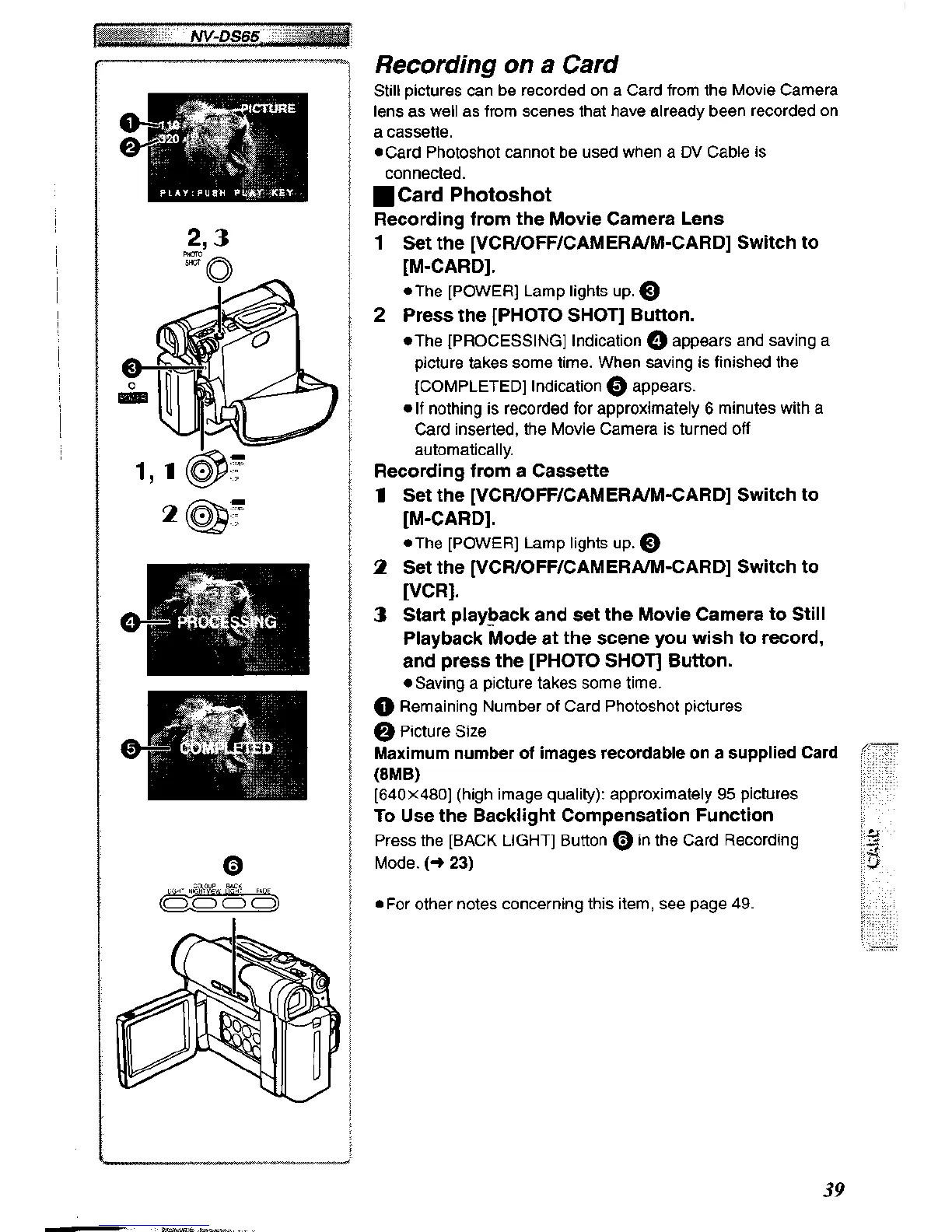 Panasonic NV-DS60A - Recording on a Card; Card Photoshot
