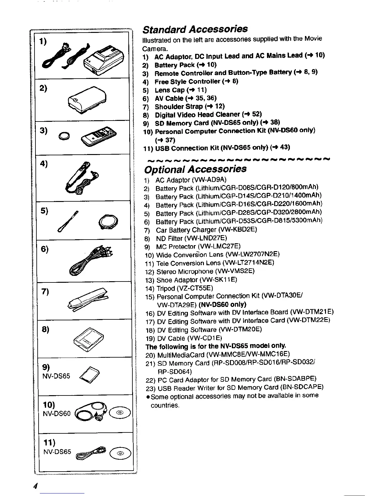 Panasonic NV-DS60A - Standard Accessories; Optional Accessories