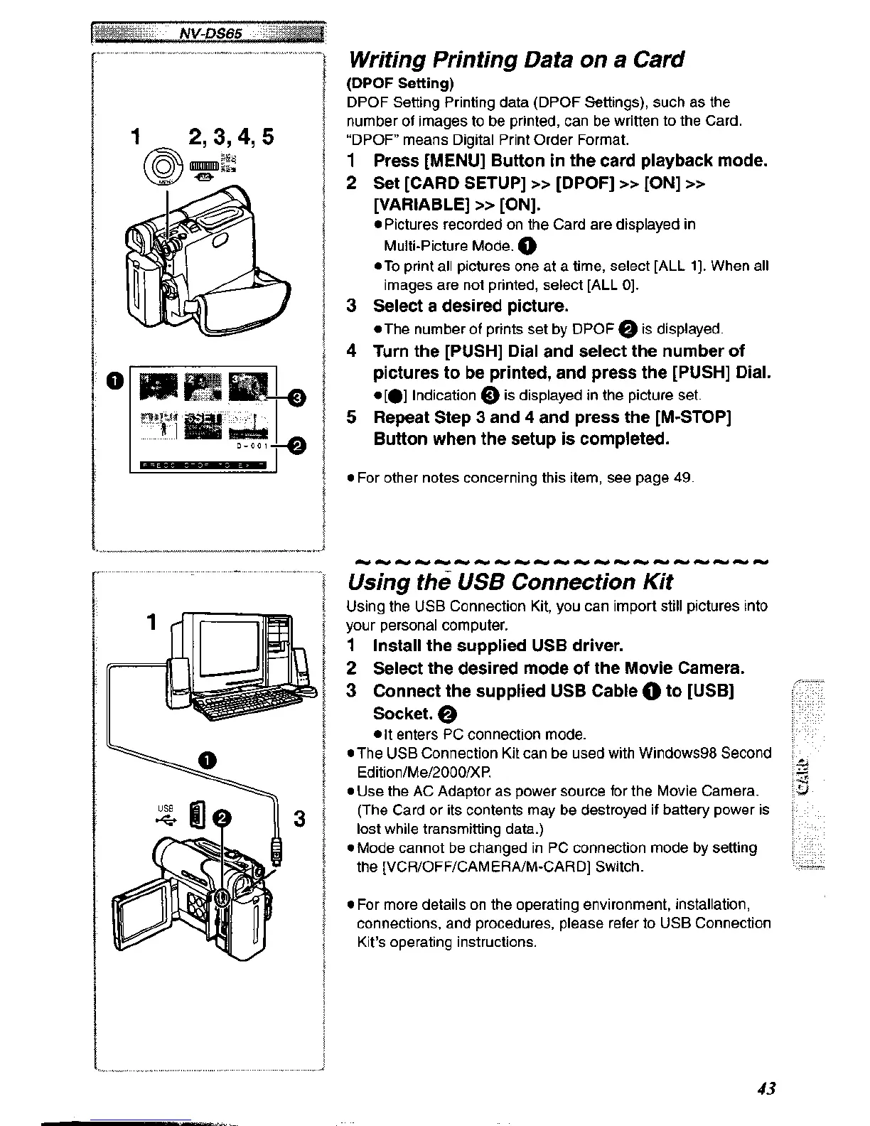 Panasonic NV-DS60A - Writing Printing Data on a Card; Using the USB Connection Kit; DPOF Setting