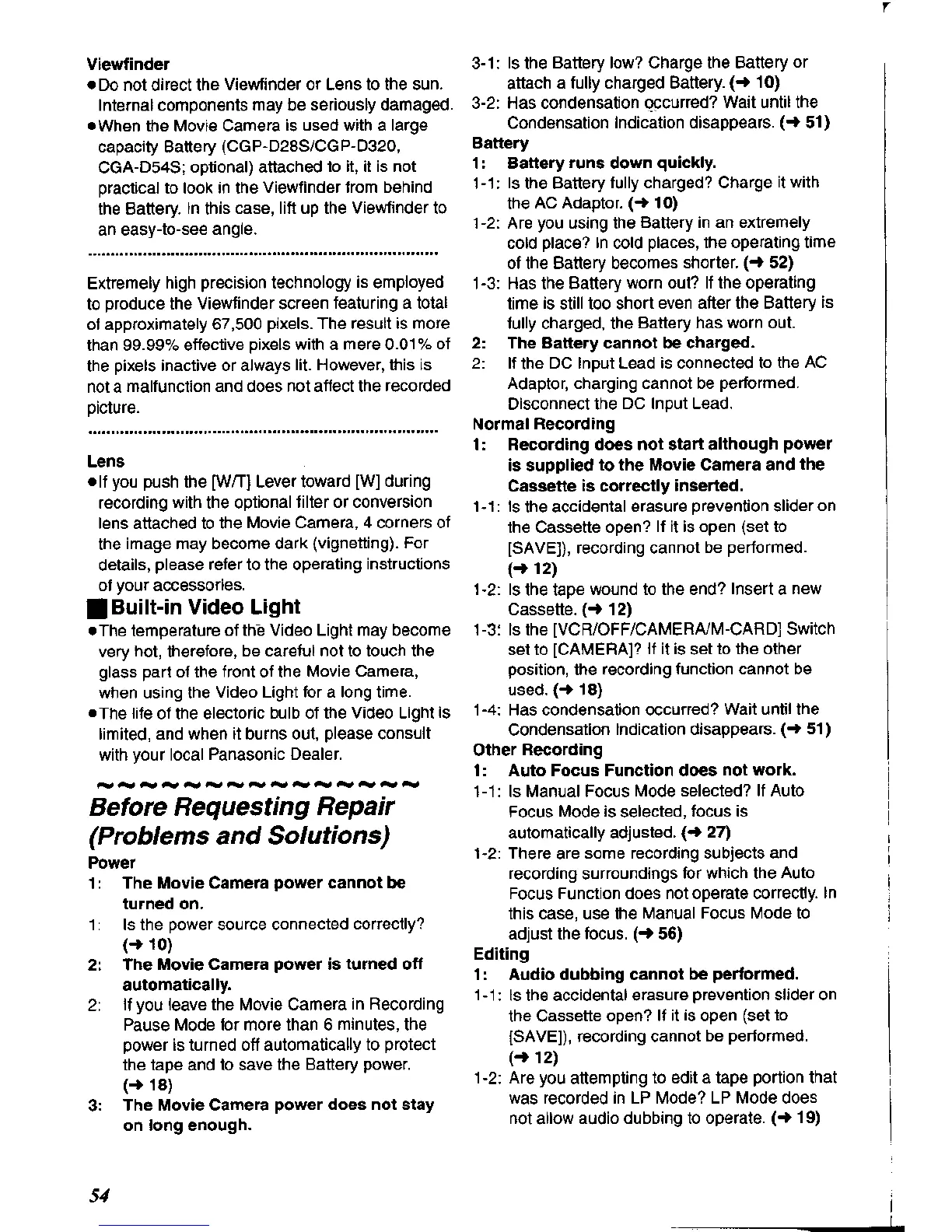 Panasonic NV-DS60A - Before Requesting Repair; Built-In Video Light