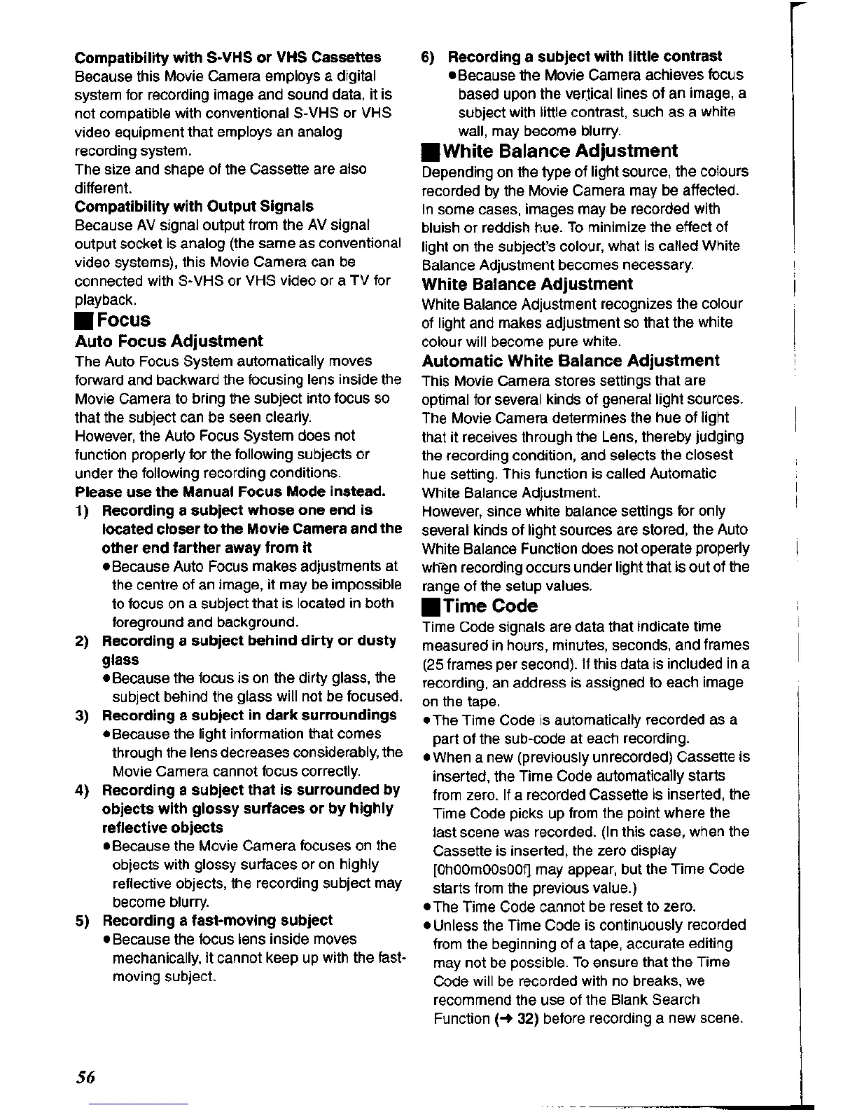 Panasonic NV-DS60A - Focus; White Balance Adjustment; Time Code