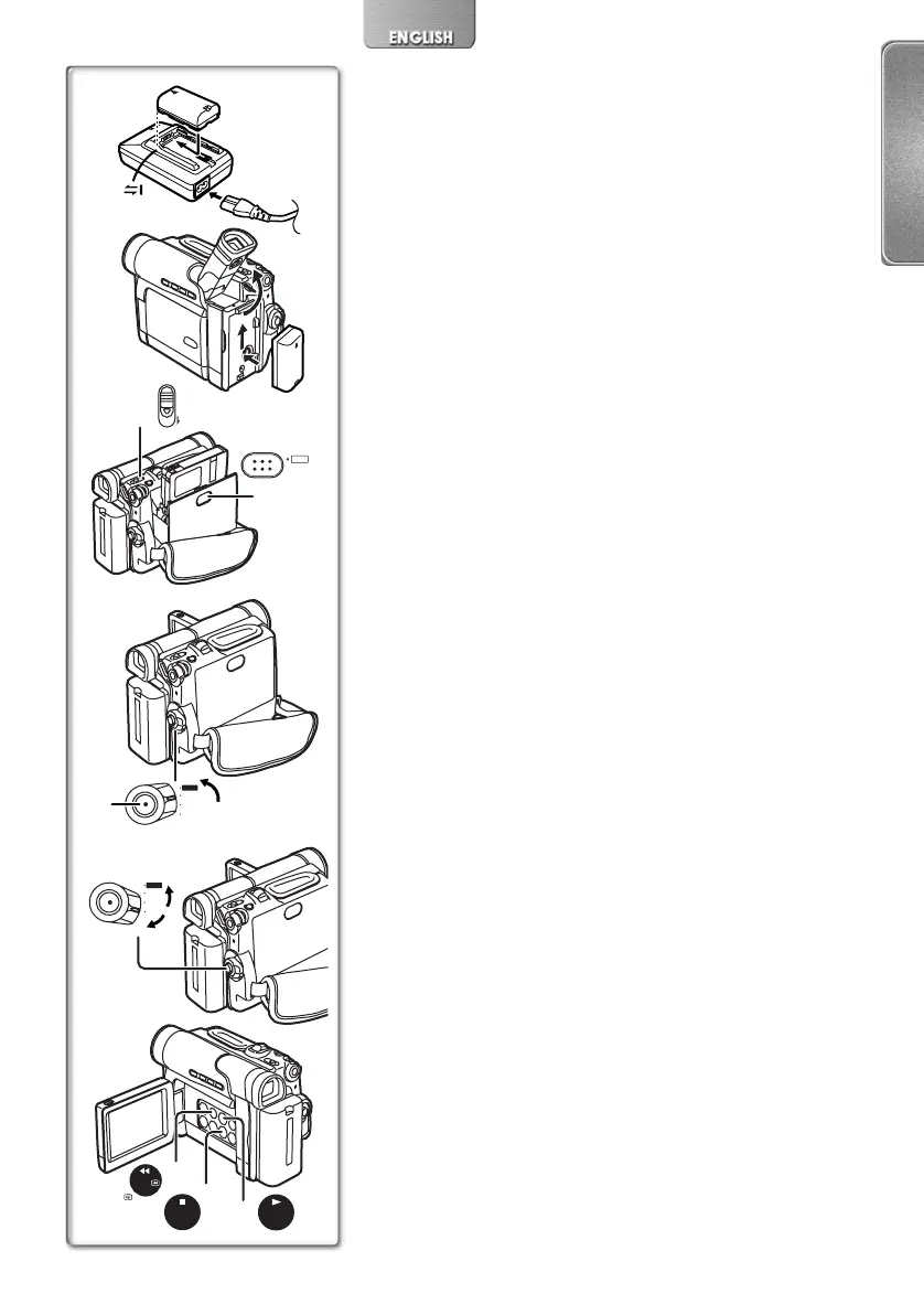 2 Attach the Charged Battery to the Movie Camera.