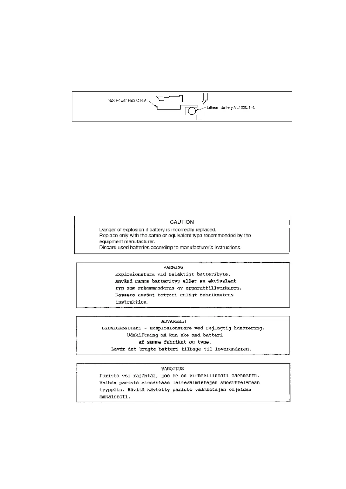equipment designed specifically for its use. / Replacement batteries must be of the same type