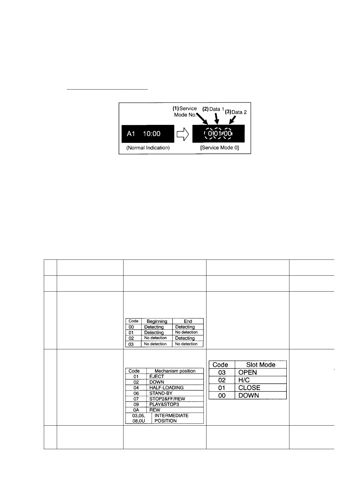 To read/decode the Service Mode, use following chart.