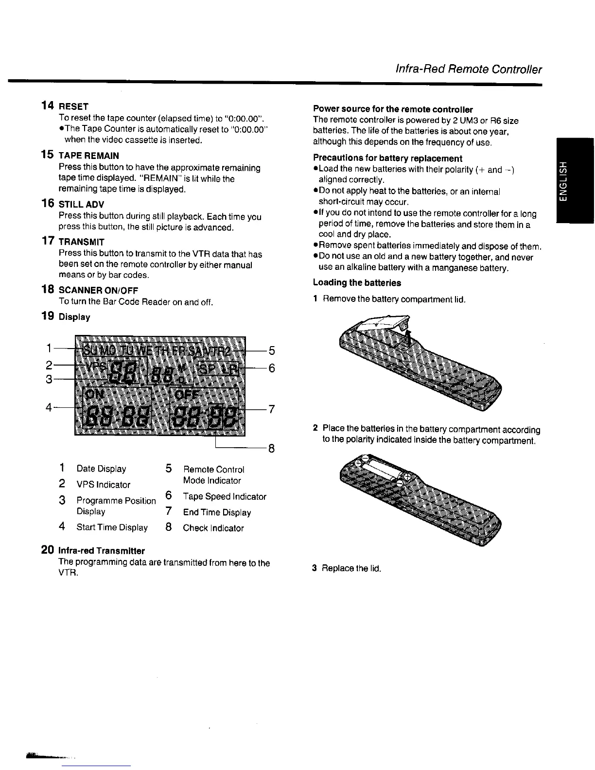 Panasonic NV-FS88EC - Power Source for the Remote Controller; Precautions for Battery Replacement; Loading the Batteries