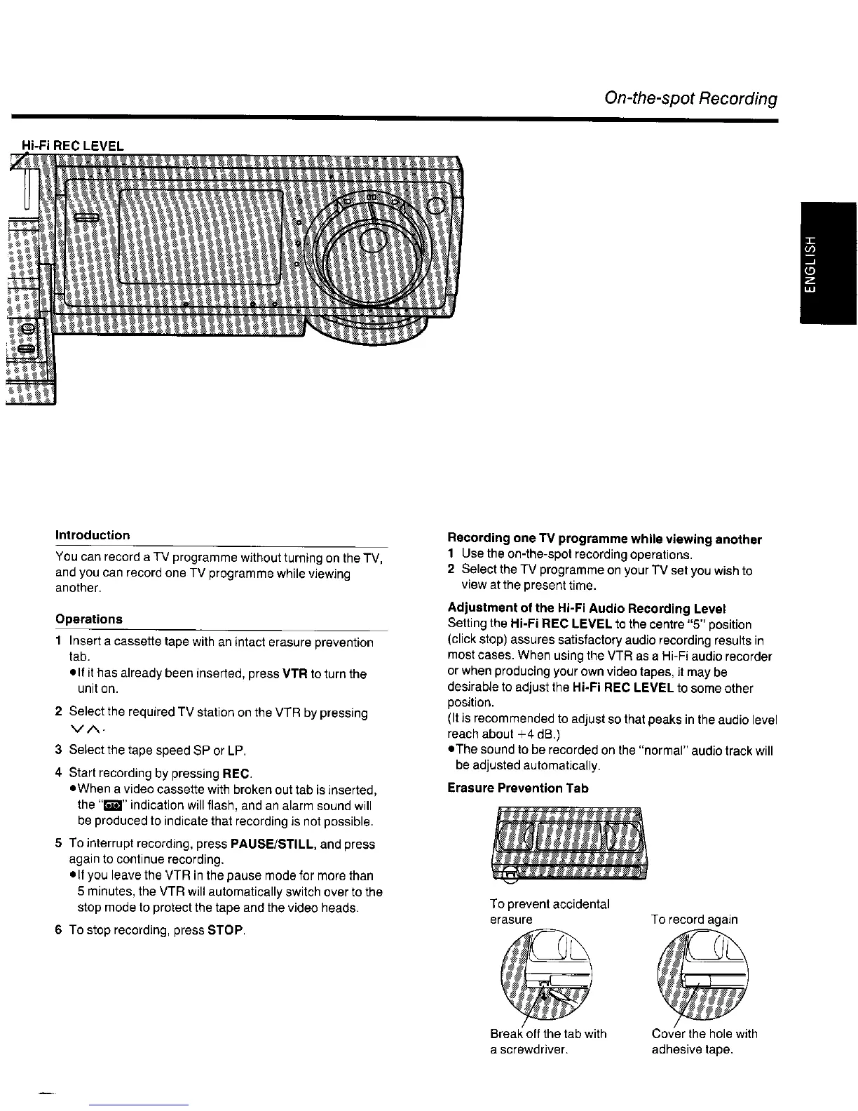 Panasonic NV-FS88EC - Introduction; Adjustment of the Hi-Fi Audio Recording Level; Erasure Prevention Tab