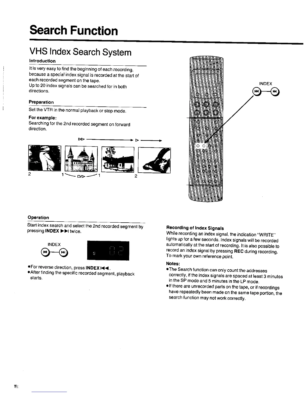 Panasonic NV-FS88EC - Search Function; VHS Index Search System; Recording of Index Signals