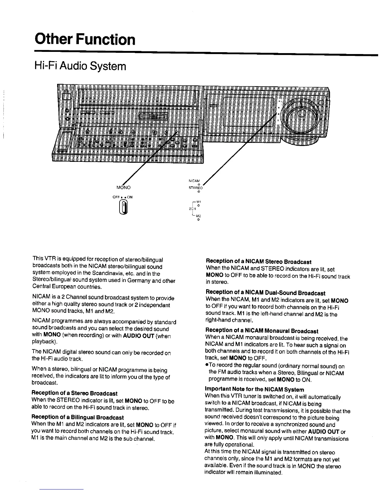 Panasonic NV-FS88EC - Other Function; Hi-Fi Audio System; Reception of a Stereo Broadcast; Reception of a Bilingual Broadcast