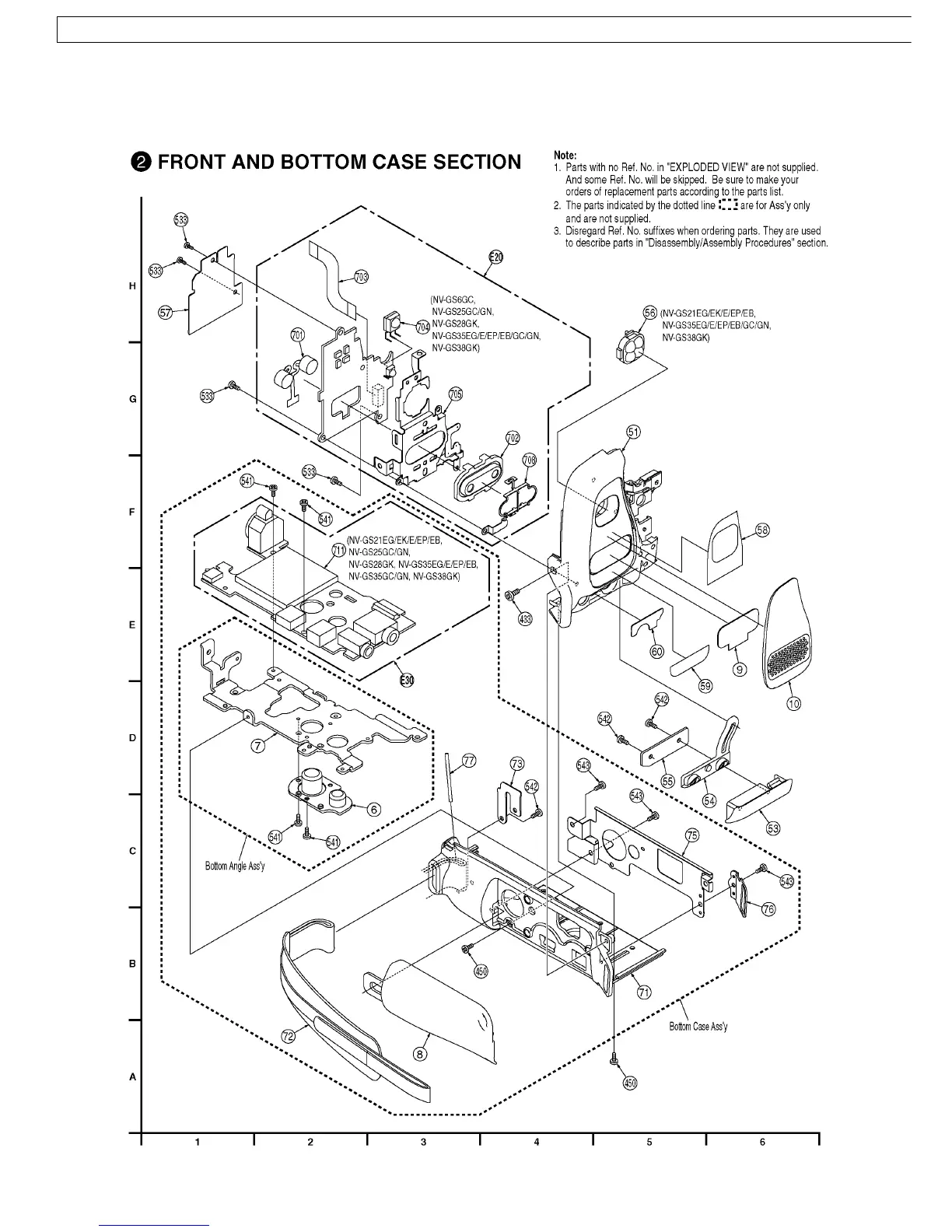 Panasonic NV-GS21EB - Front and Bottom Case Section