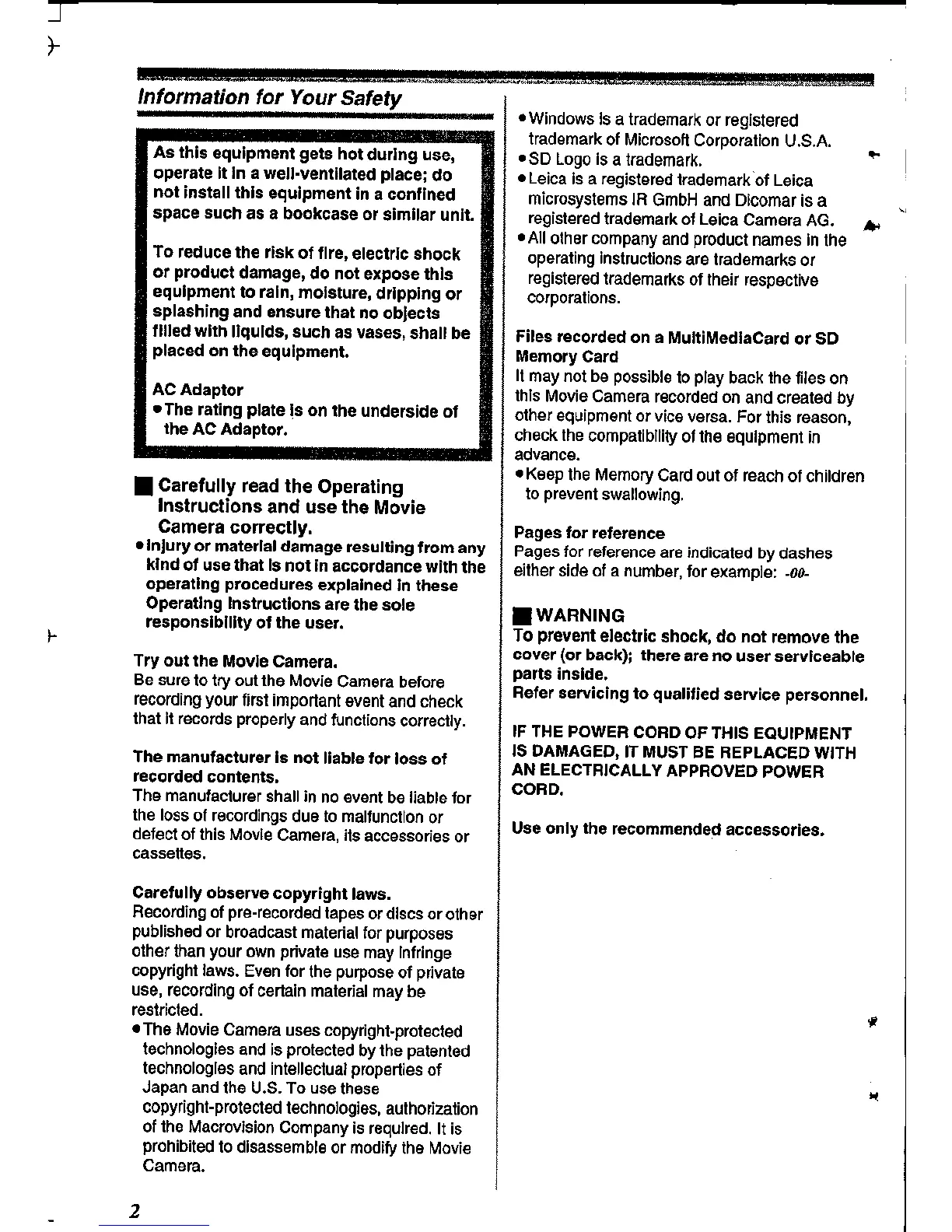 Panasonic NV-GS400 - Information for Your Safety