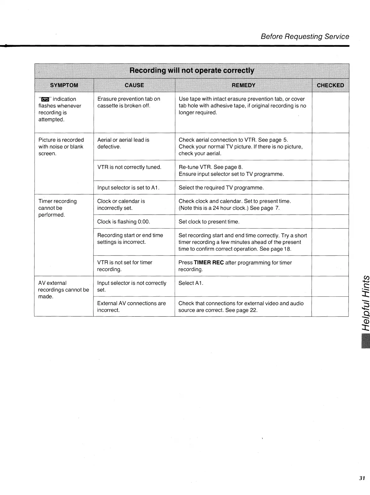 Check aerial connection to VTR. See page 5.