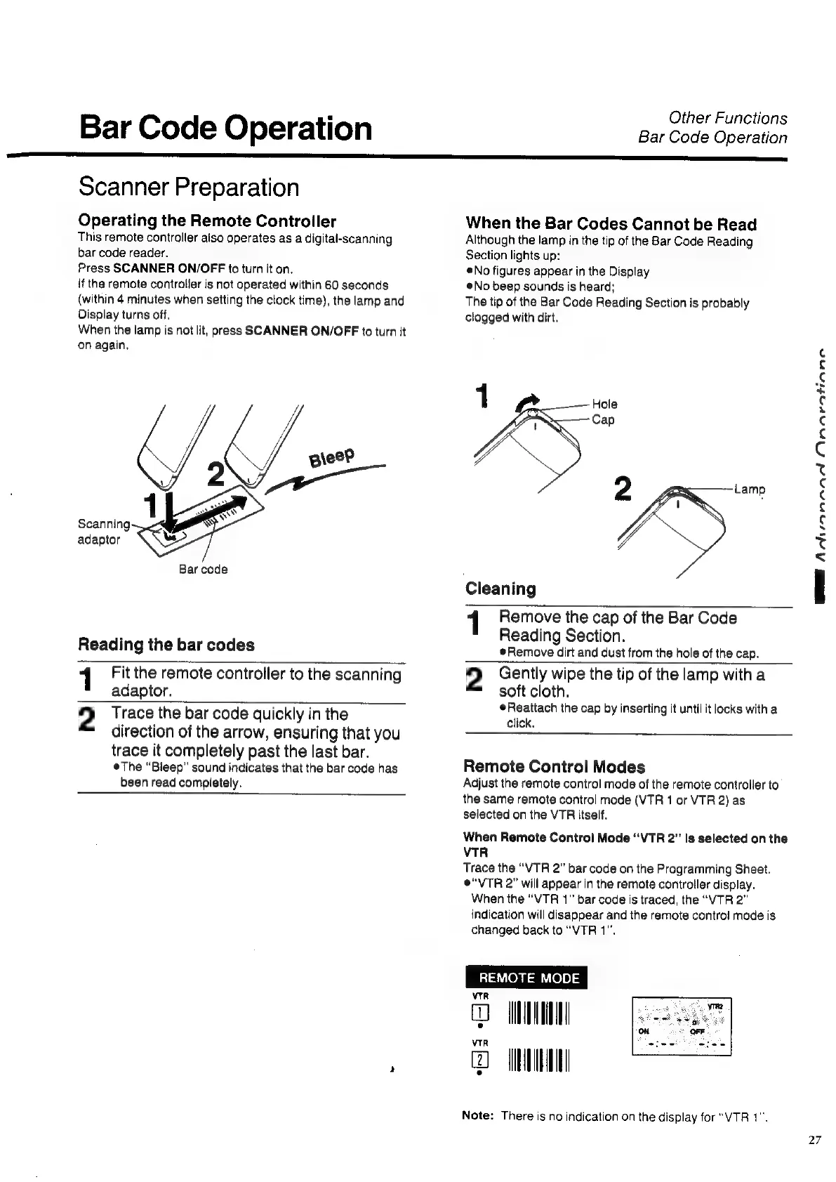 Panasonic NV-HD100EA - Bar Code Operation