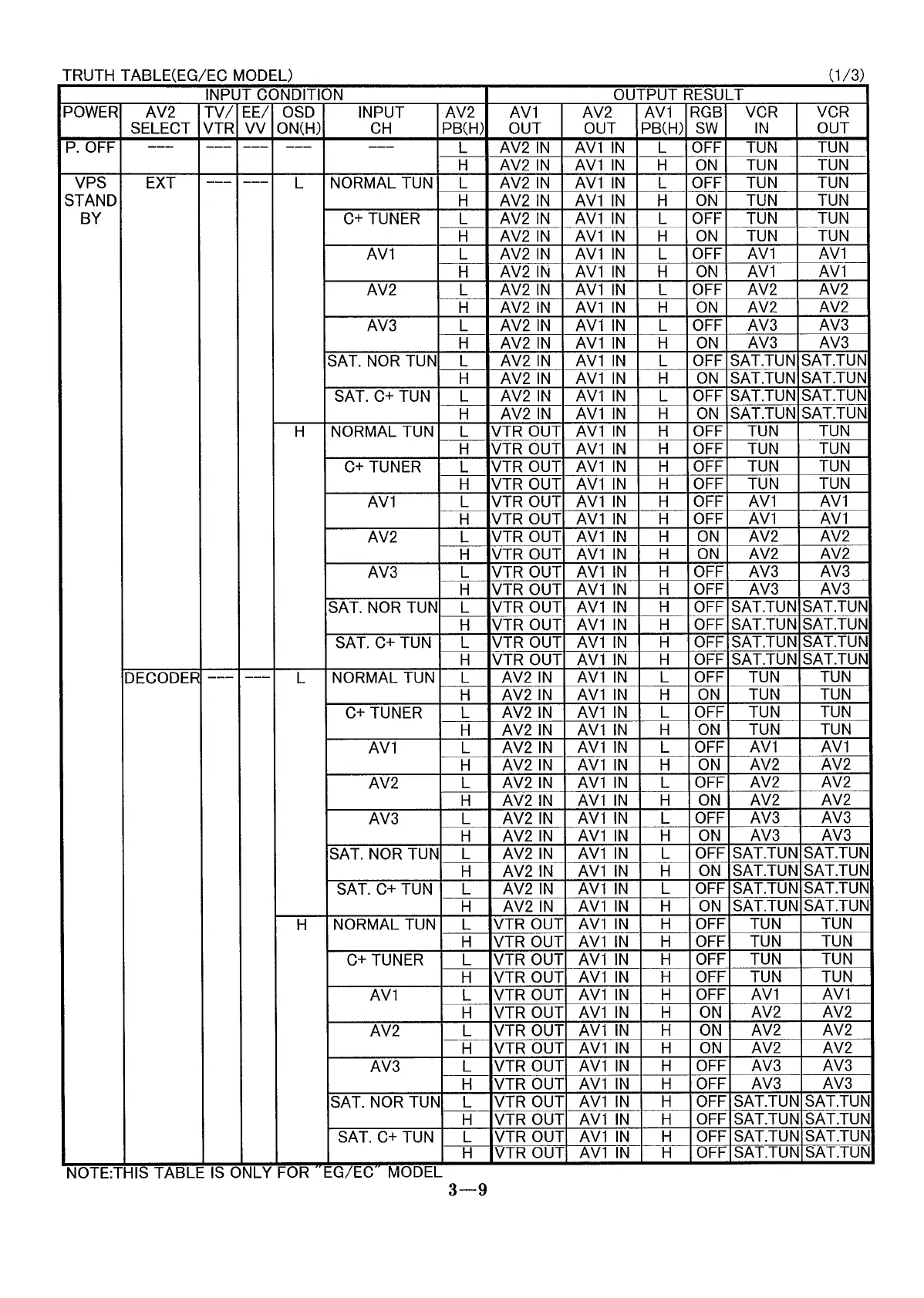Panasonic NV-HD635 - Truth Table